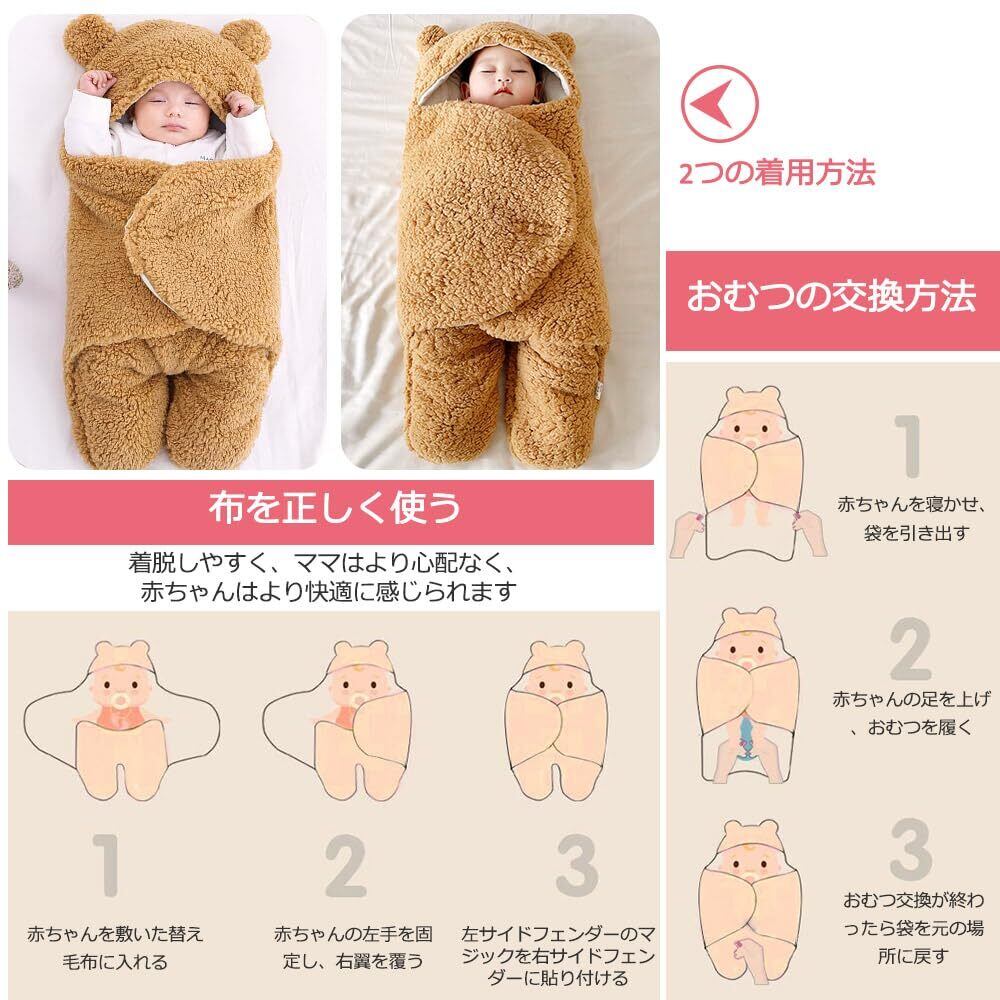 【フルカバーブランケット】 おくるみ 冬を一晩中暖かく包み込み、全身をやさしく包み込み、赤ちゃんに安心と眠りを与えます。両サイドの柔らかなウィング型デザインは、まるでお母さんの腕のように赤ちゃんを包み込みます。可愛いクマのフードが耳を保護し、一晩中赤ちゃんの頭を暖め、赤ちゃんをより魅力的に見せます。