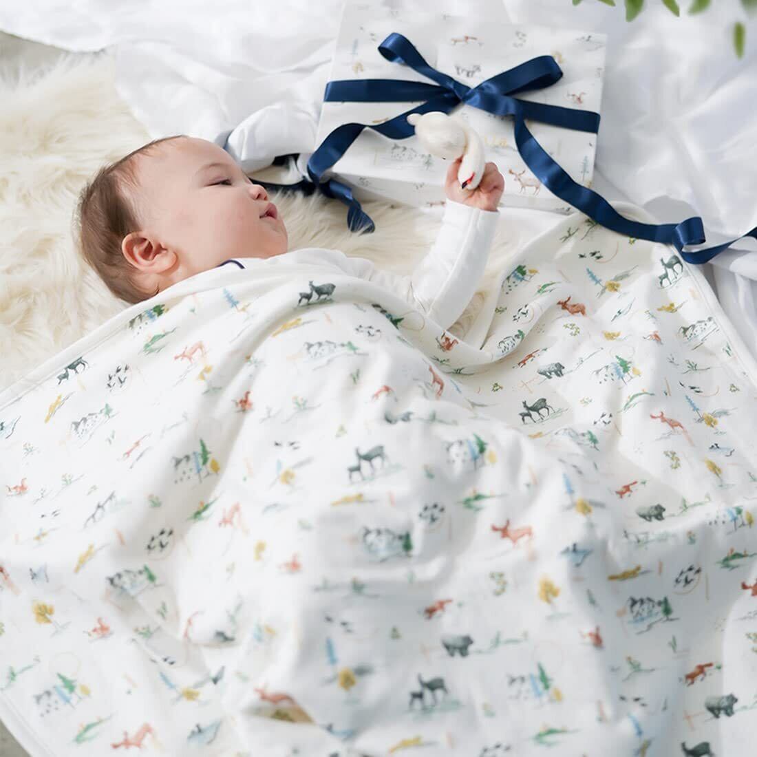 ハルウララ 出産祝い ブランケット オーガニックコットン おくるみ 綿100% 柔らかい ベビーギフト お昼寝 ベビーカー掛け (森のおはなし)