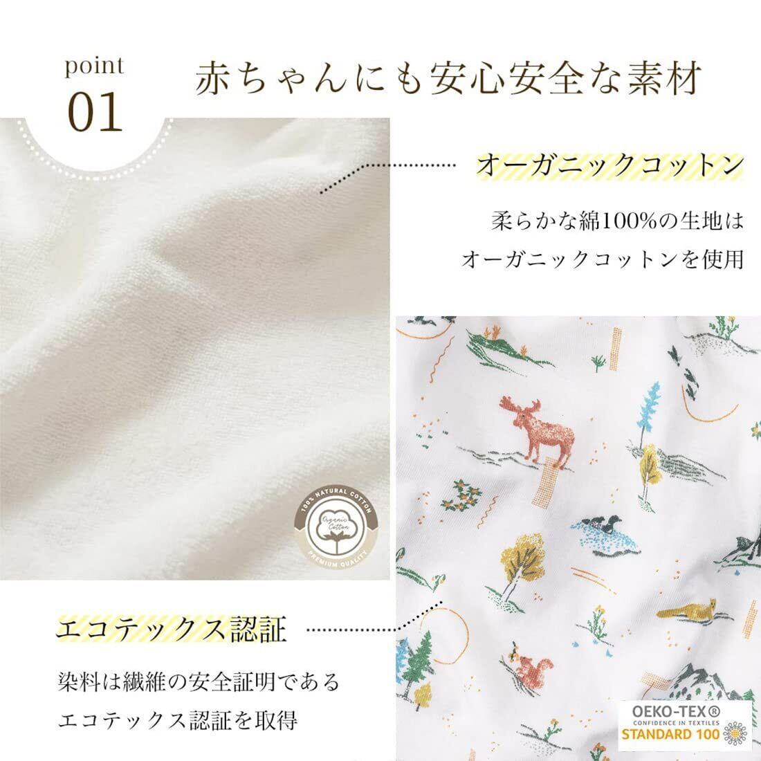 オーガニックコットンのブランケットが、エアコンや日差しから赤ちゃんの柔らかい肌を守ります。オーガニックコットンでできているので、あかちゃんの敏感な肌にも安心です。お昼寝時やお出かけ時にも必須アイテムです。