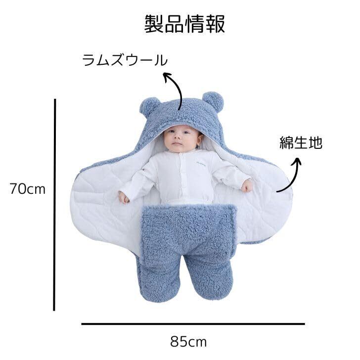 冬 秋 用の暖かいおくるみです。簡単装着で、手間いらずです。 新生児~4か月くらいが目安になります。