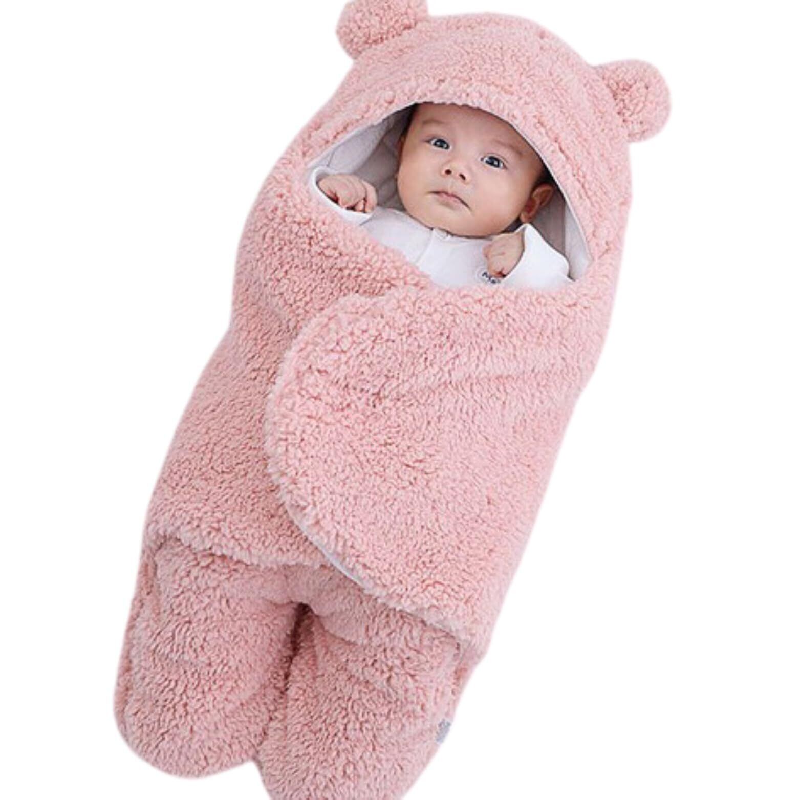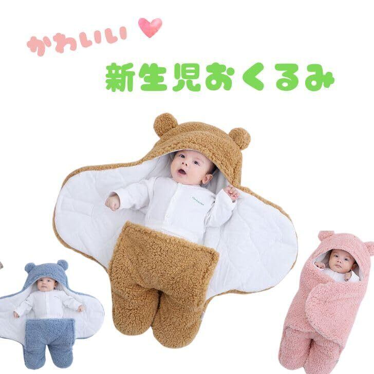 【数量限定】おくるみ 冬 秋 新生児 退院時 もこもこ クマ ベビー ベビー用品 出産祝い プレゼント 女の子 男の子 防寒 赤ちゃん ベビーおくるみ 茶色 ピンク ブルー (ピンク) | 無意味ステッカー