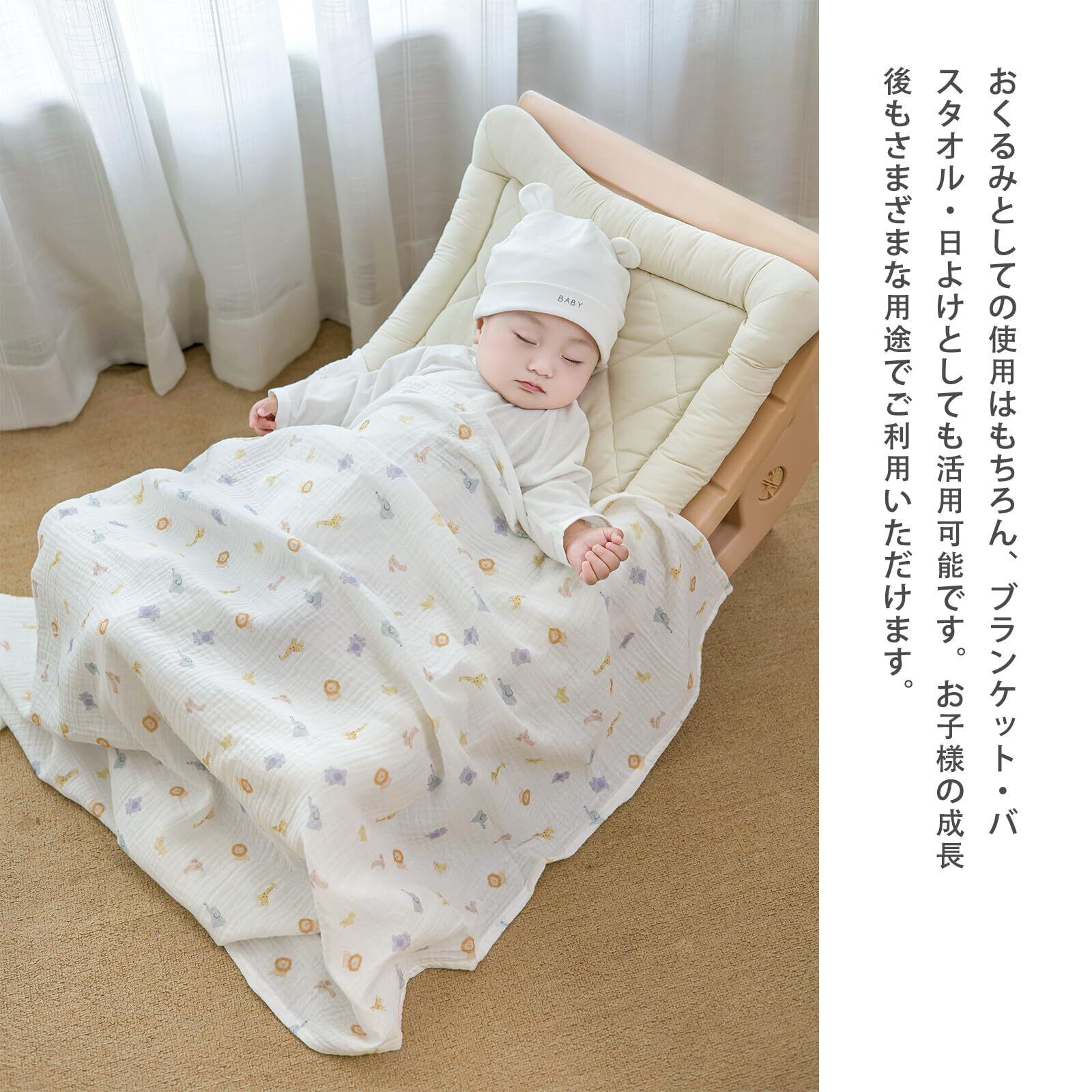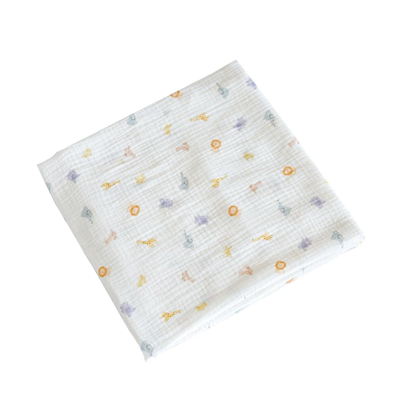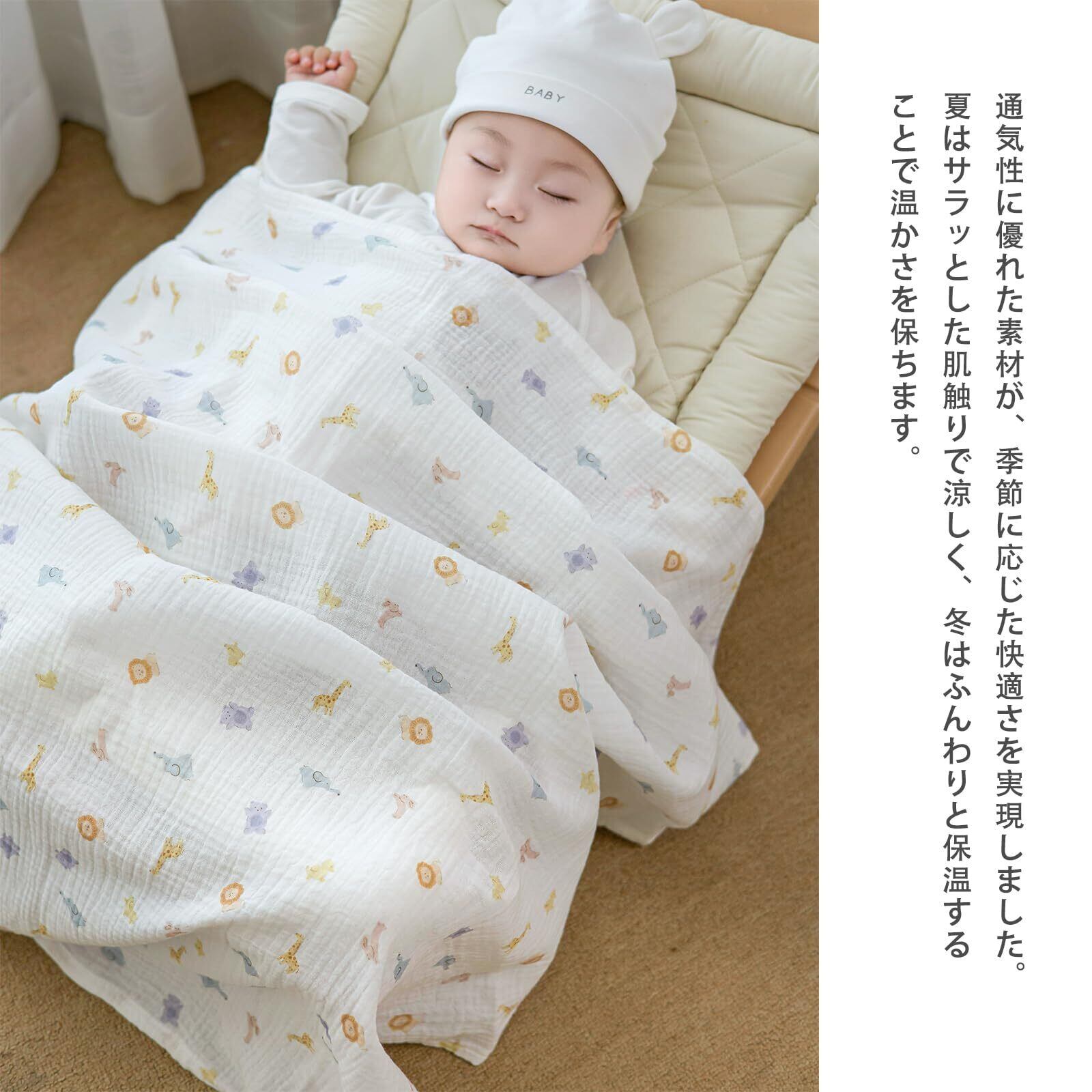 おくるみ ガーゼ ガーゼケット 赤ちゃん 100cm×100cm ベビーブランケット 授乳ケープ 綿 コットン 吸水 速乾 新生児 出産準備 出産祝い (白い動物の世界)