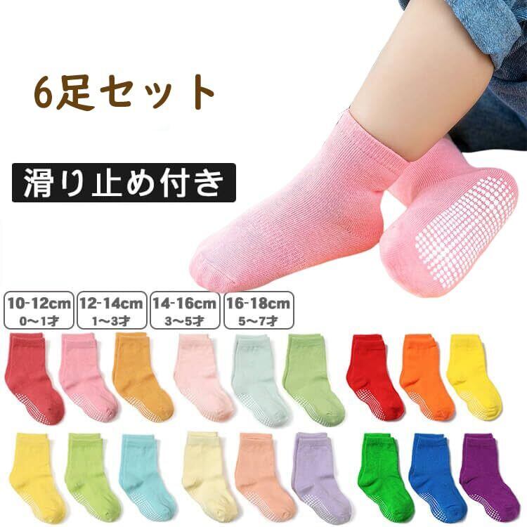 [ZGKULAEAOW] カラフル 6足セットベビー靴下女の子 男の子 ショー ト赤ちゃん ソックス 滑り止め付き キッズ 子供 クルー丈 ソックス ネオンカラー