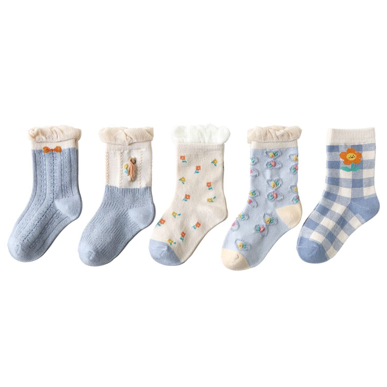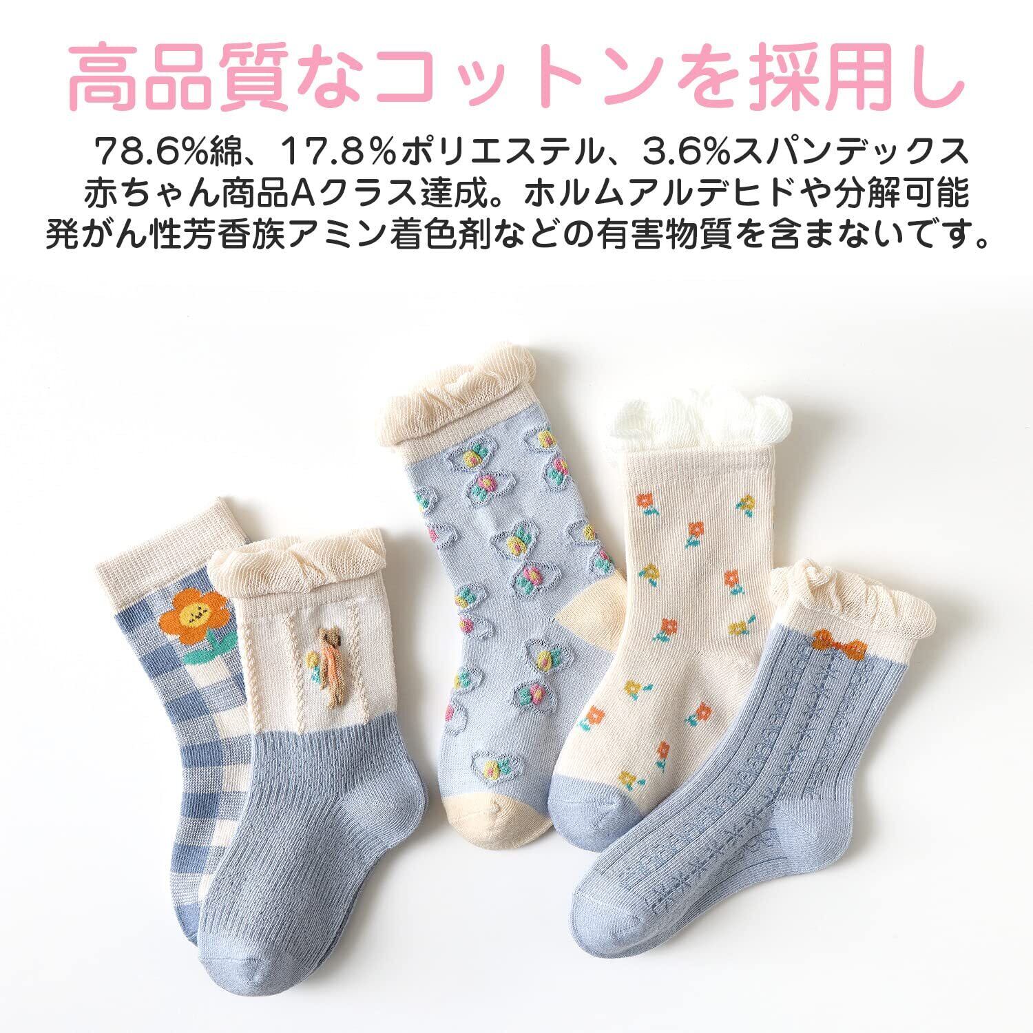 [Hapipana] キッズ ソックス 5足セット 靴下 ベビー クルーソックス 男女共用 男の子 男児 女の子 女児 小学生 子供の靴下 綿 保温 柔らかい カラフル 通学 通園 0-5歳