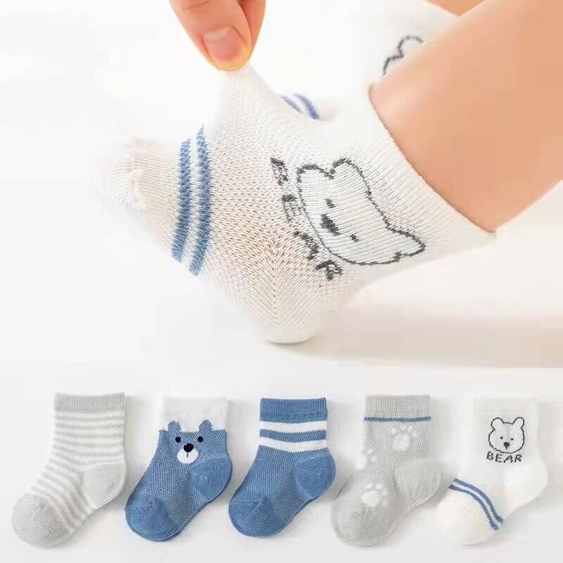 [スリーマッシュルーム] ベビー靴下 ソックス キッズ 赤ちゃん 靴下 夏 メッシュ素材 通気 速乾 靴下 春 秋 綿 性 柔らかい かわいい 男の子 女の子 5足セット 抗菌 通園通学