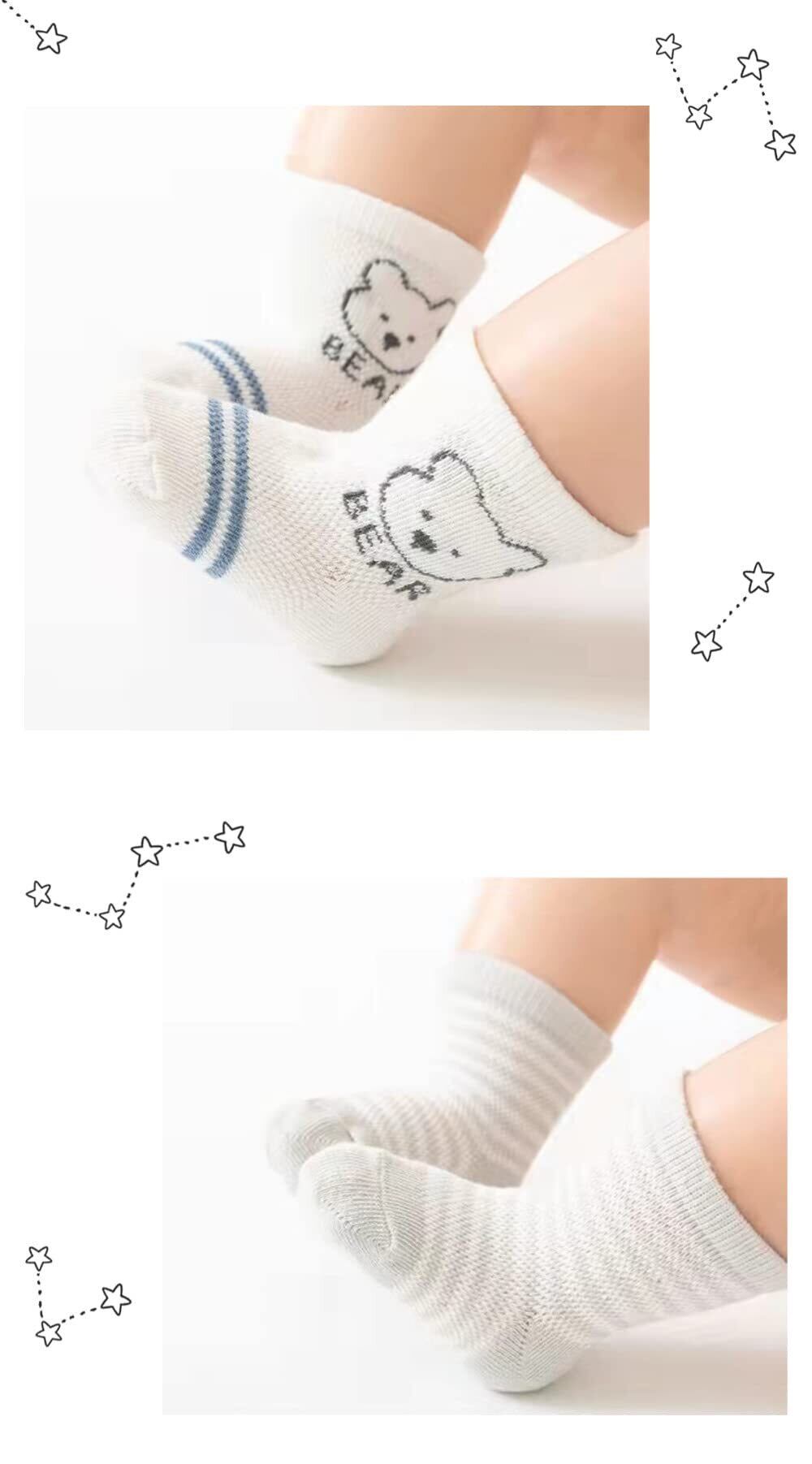 【2022最新】[スリーマッシュルーム] ベビー靴下 ソックス キッズ 赤ちゃん 靴下 夏 メッシュ素材 通気 速乾 靴下 春 秋 綿 性 柔らかい かわいい 男の子 女の子 5足セット 抗菌 通園通学 | 無意味ステッカー