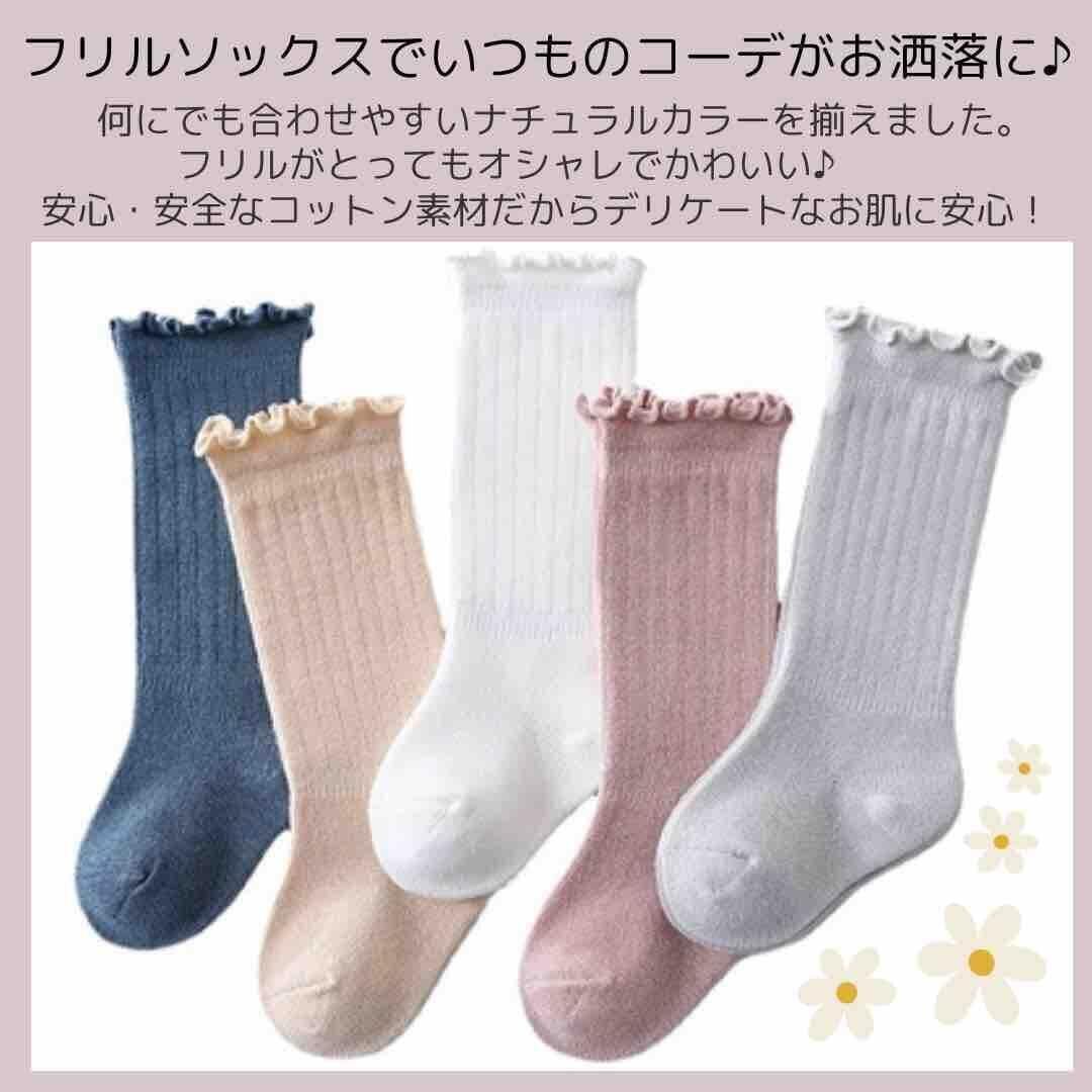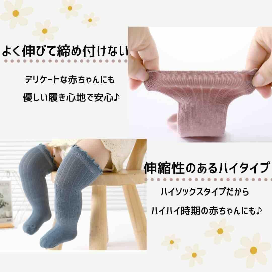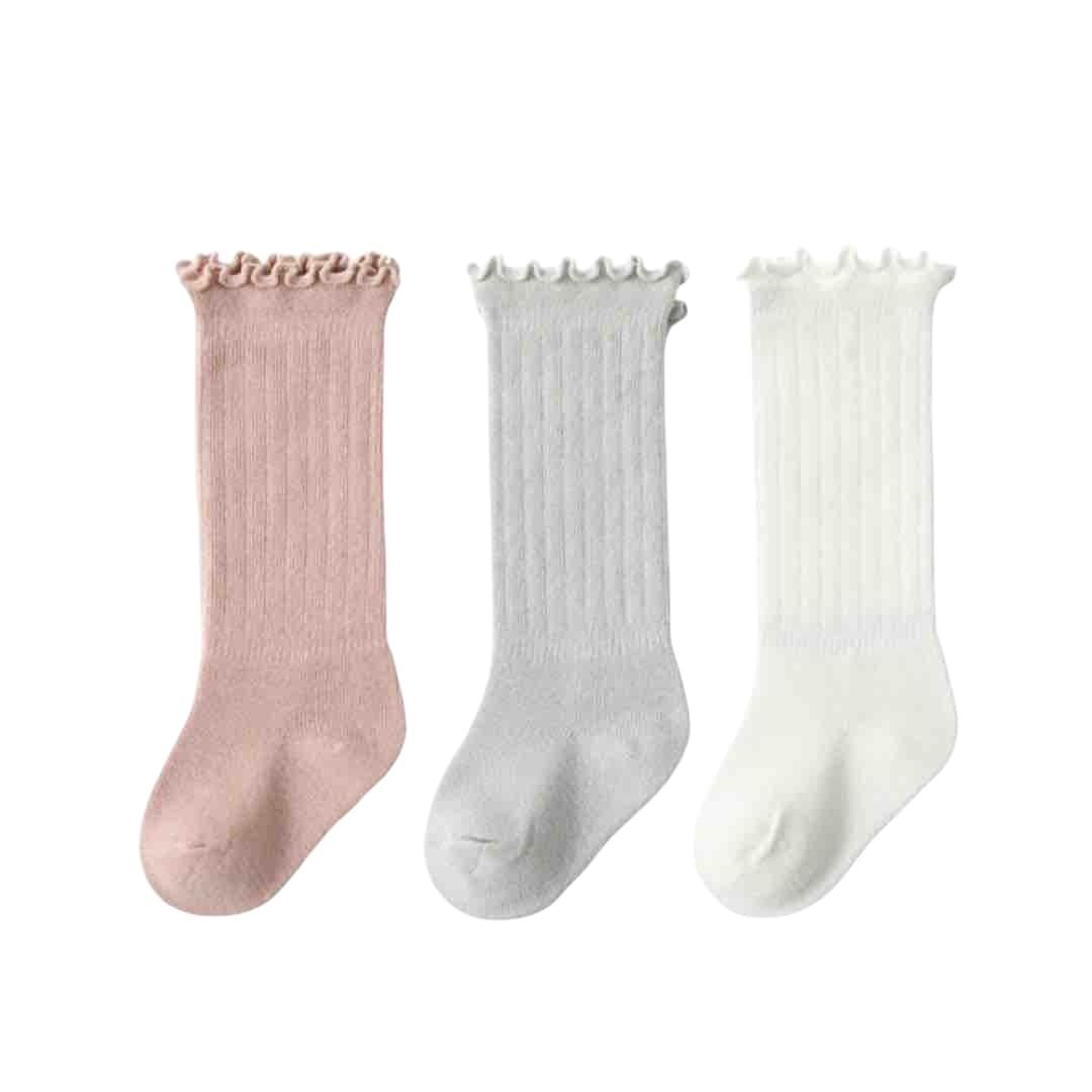 セット内容: シンプルでおしゃれなベビーハイソックス3足セット、フリル付きデザインで可愛らしい仕上がり