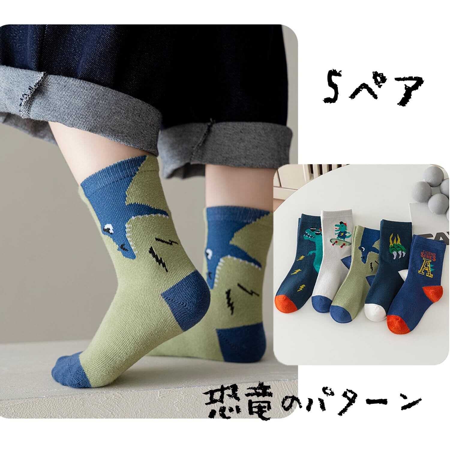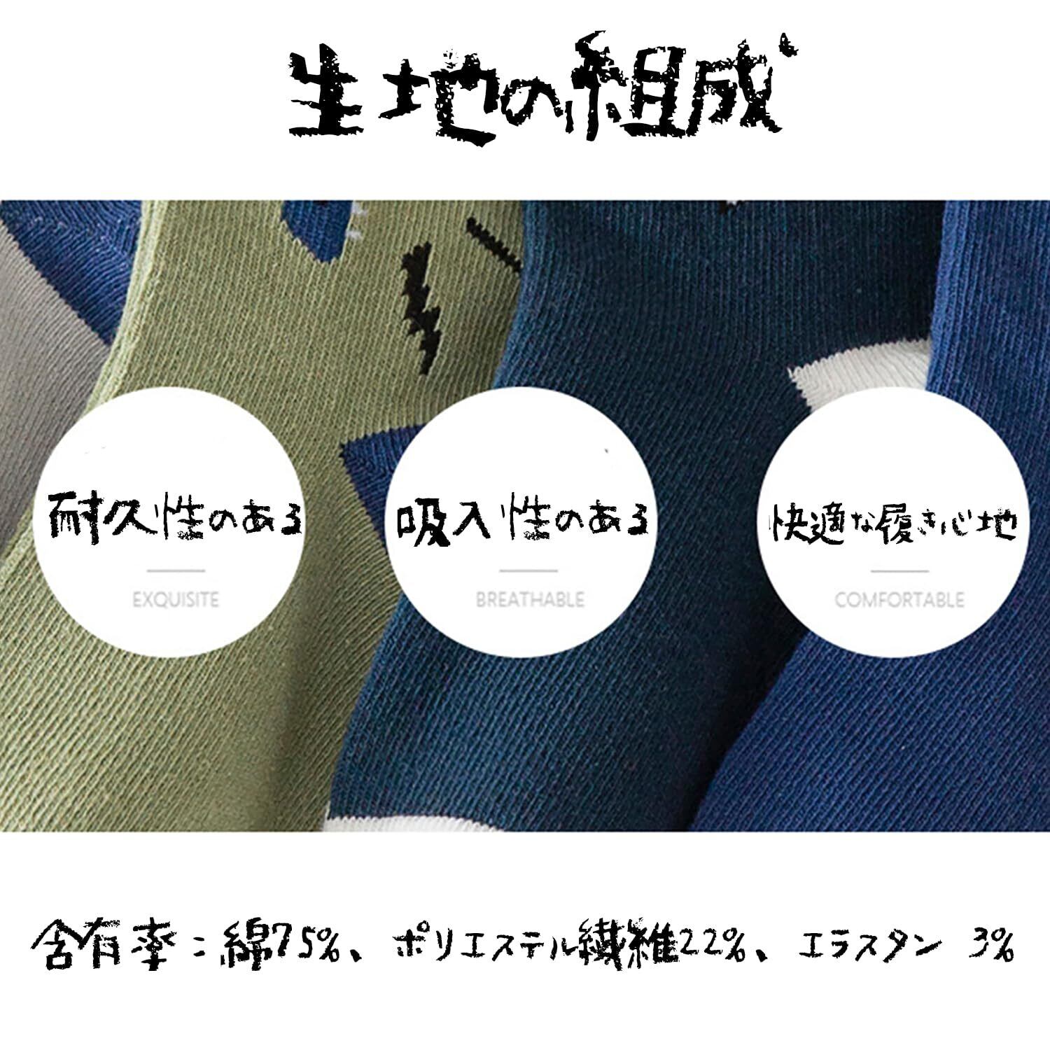 [KOZYTASY] キッズ 靴下 男の子 5足組 子供 綿の素材 通気性 非スリップ 柔らかくて肌 - フレンドリー 1-12歳