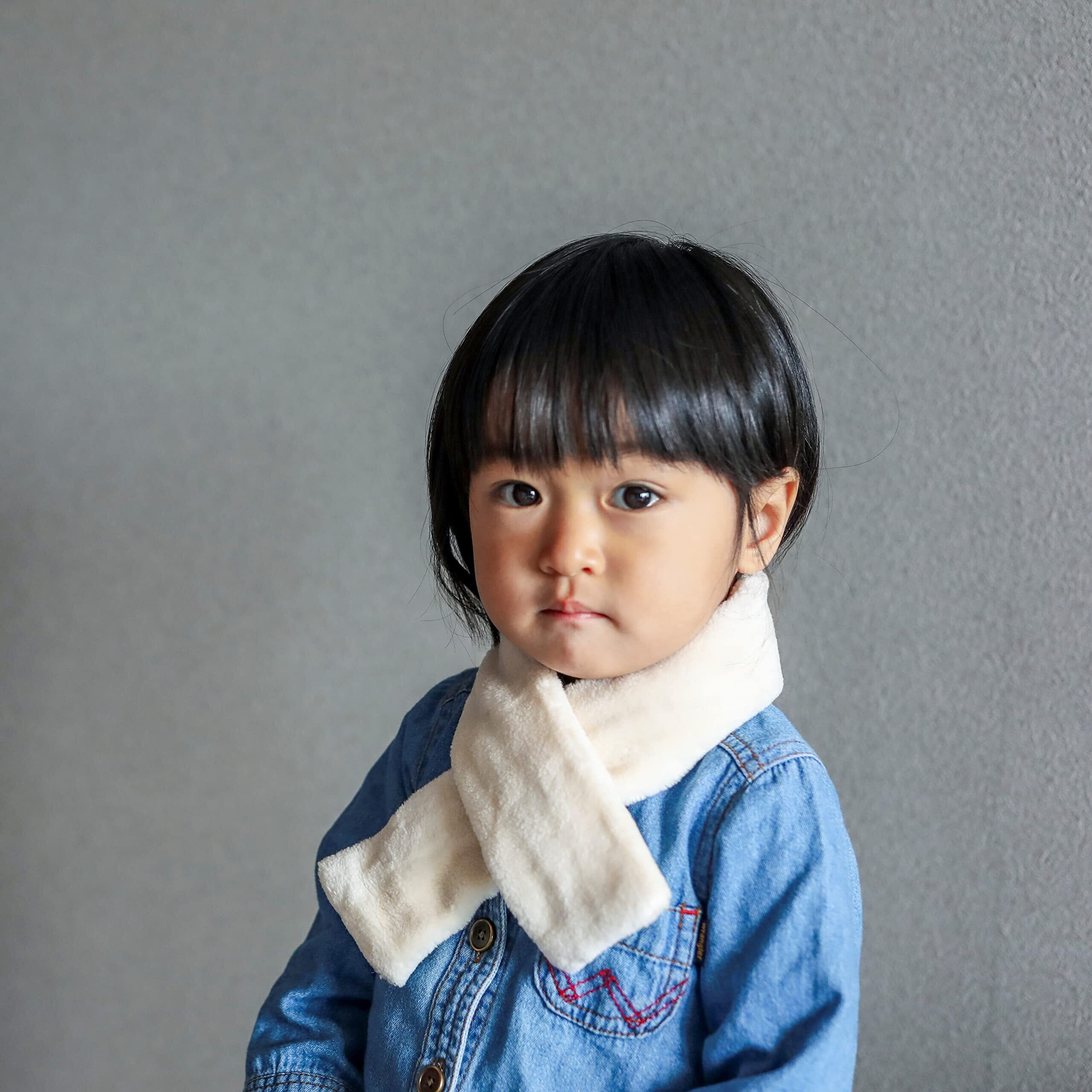 [Lopeha] 日本製 オーガニックコットン100% ファーマフラー ベビー キッズ サイズ調節可能 男女兼用 フォーマルにも 卒園 入園式