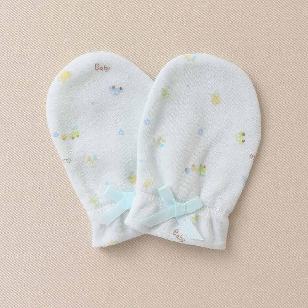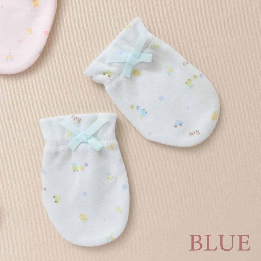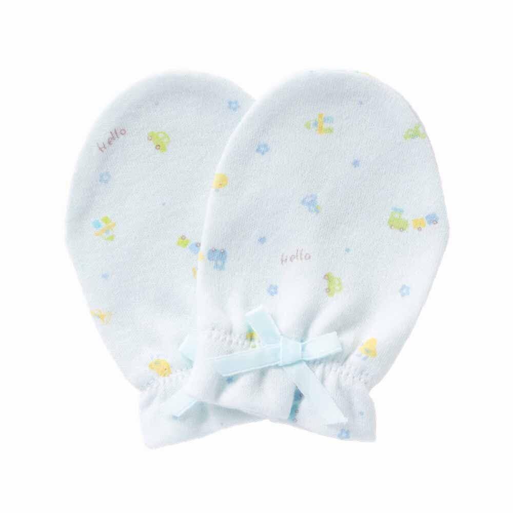プチベビー スムース おもちゃ柄 ベビー ミトン 綿100 かわいい パステル 10903 (ブルー)