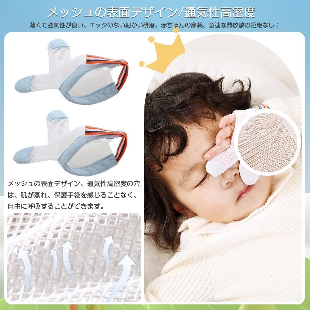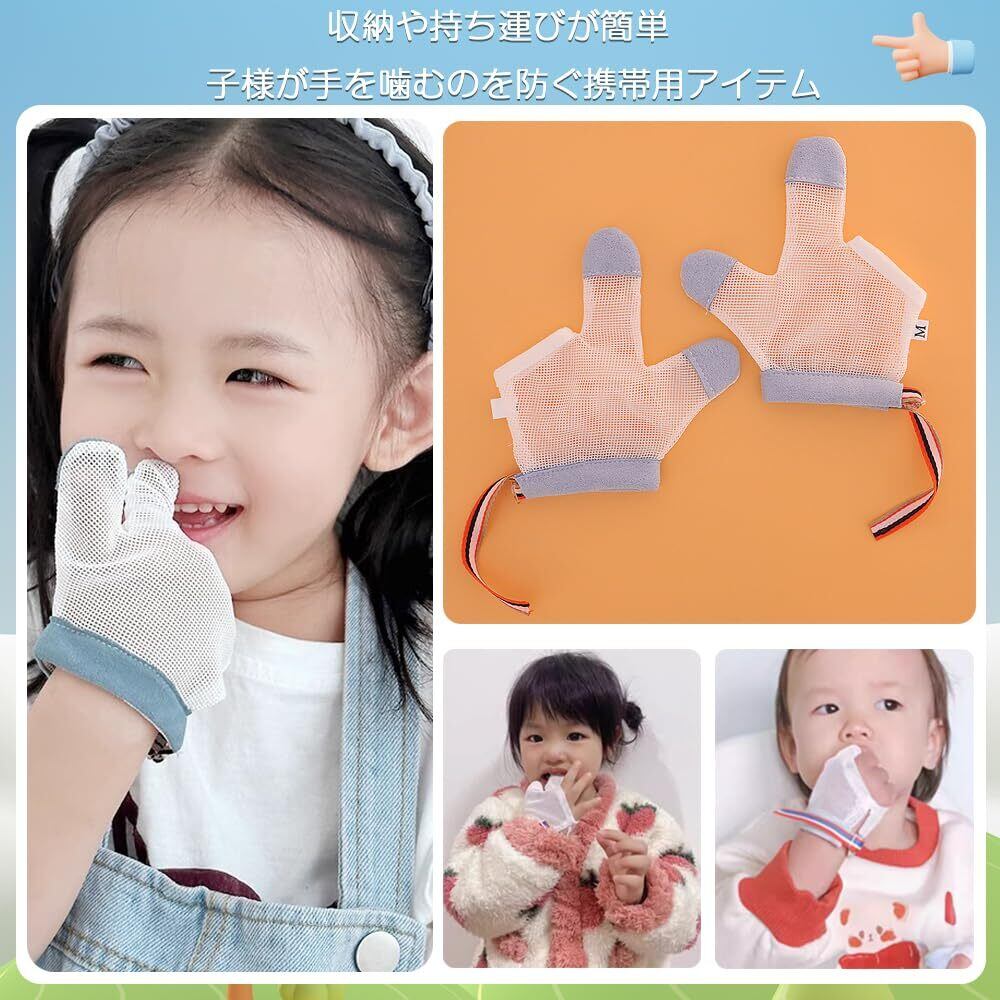 親指しゃぶり矯正 指食い防止手袋 2個セット 赤ちゃん 指しゃぶり防止 ベビー 歯固め 手袋 ナイロン製 柔軟性 通気性 調節可能 自由に指を離したり曲げ 収納や持ち運びが簡単(15ヵ月~3歳サイズ M)
