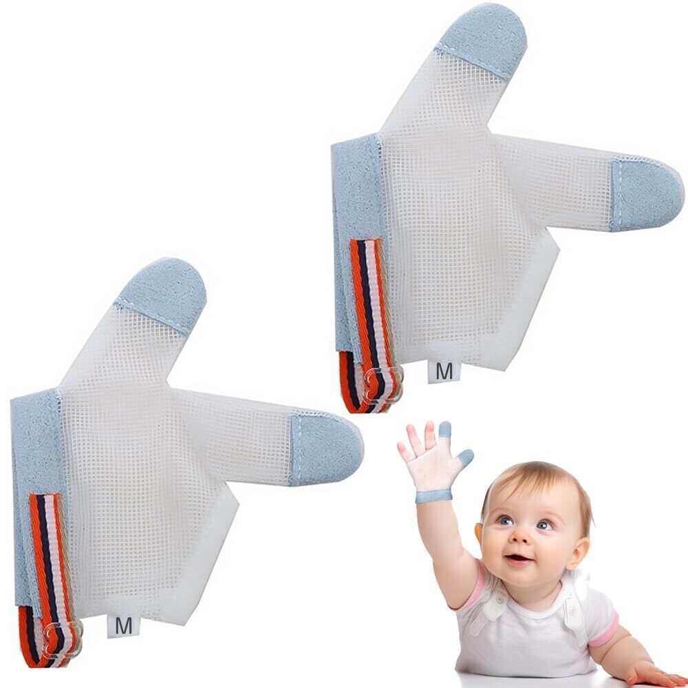 【2022最新】親指しゃぶり矯正 指食い防止手袋 2個セット 赤ちゃん 指しゃぶり防止 ベビー 歯固め 手袋 ナイロン製 柔軟性 通気性 調節可能 自由に指を離したり曲げ 収納や持ち運びが簡単(15ヵ月~3歳サイズ M) | 無意味ステッカー