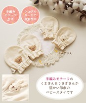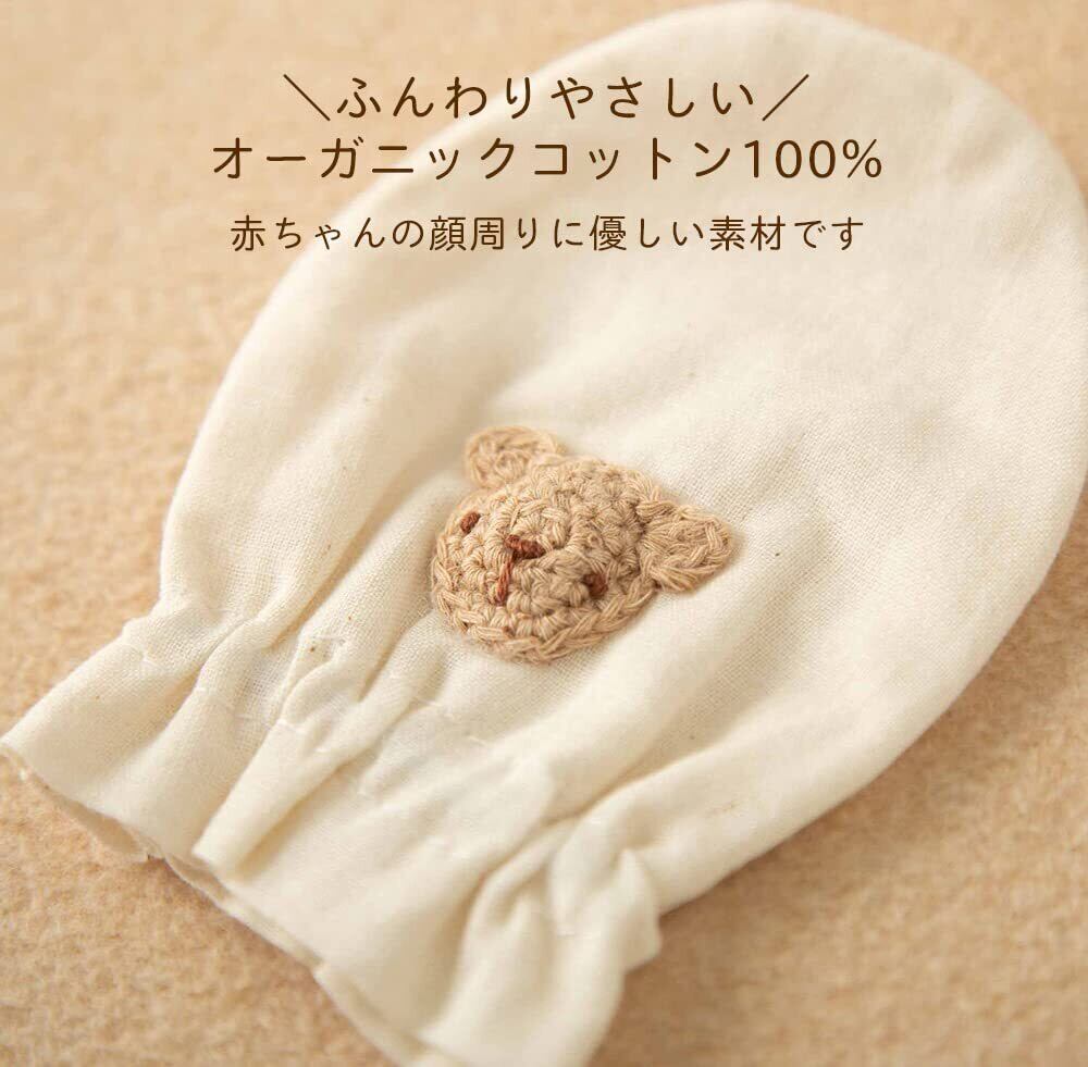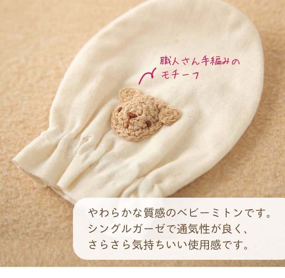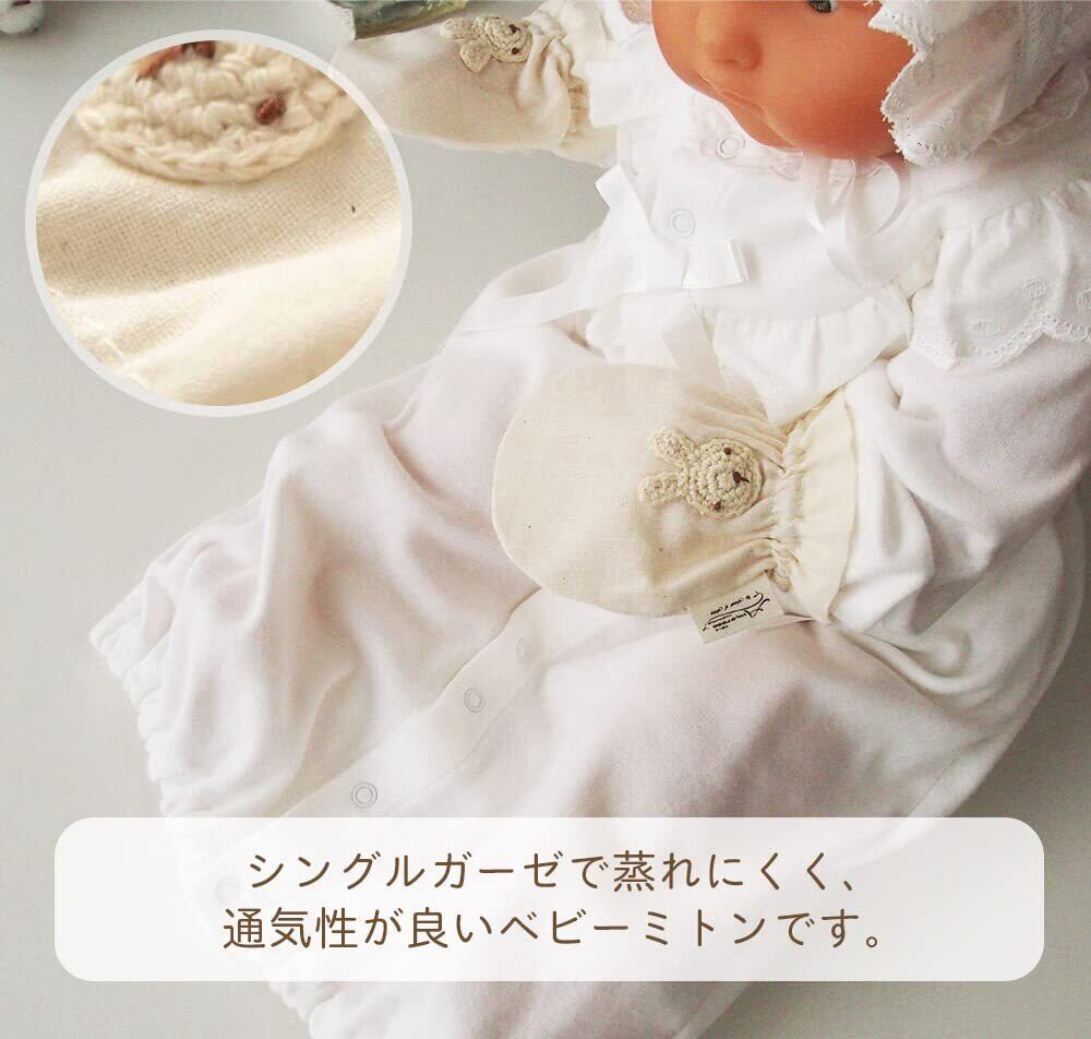 [Amorosa mamma] アモローサマンマ 【日本製】 オーガニックコットン ガーゼ ベビーミトン コットン100% 手編みモチーフ付き