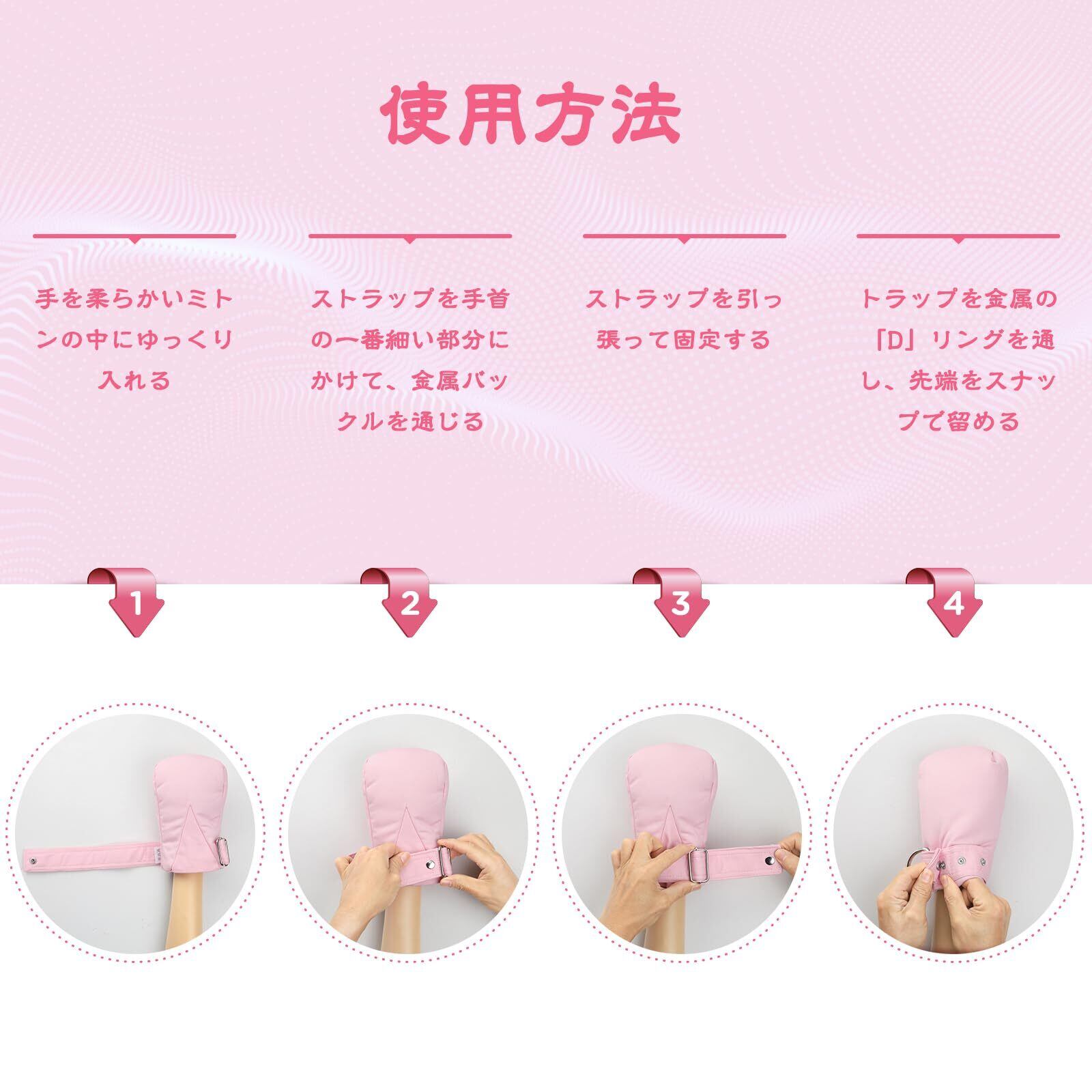 【愛らしい&実用的なデザイン】当社のソフトパッド付きミトンは、キュートなピンクデザインと幅広のカフ開口部を特徴としており、魅力的で着用が簡単です。家庭での使用やイベントに最適で、これらのミトンはあなたの見た目に楽しいタッチを加えつつ、実用的な制約を提供します。おむつトレーニング中の問題行動のあるあいつの管理に大変役立ち、物を操作することを防ぎ、日々のルーティンに安全性と便利さを追加します。