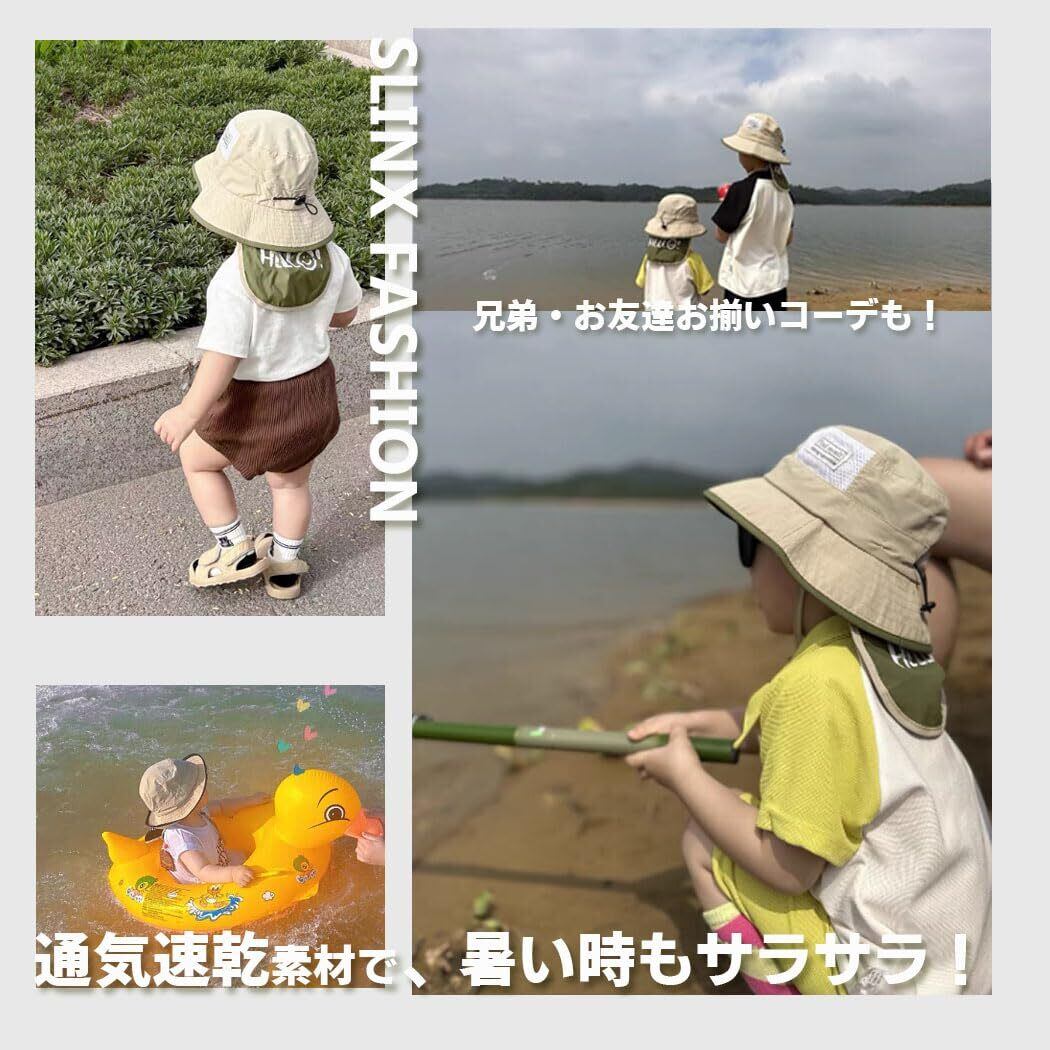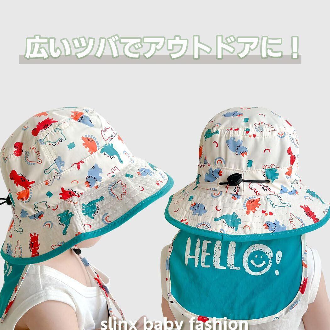 [SLINX] ベビー 帽子 ハット キッズ 子供 日よけ サファリハット つば広 日除け帽子 男の子 赤ちゃん UVカット 恐竜 あごひも 紫外線対策 フラップキャップ帽子 かわいい 春夏 通園/通学/海遊び/旅行 XM11