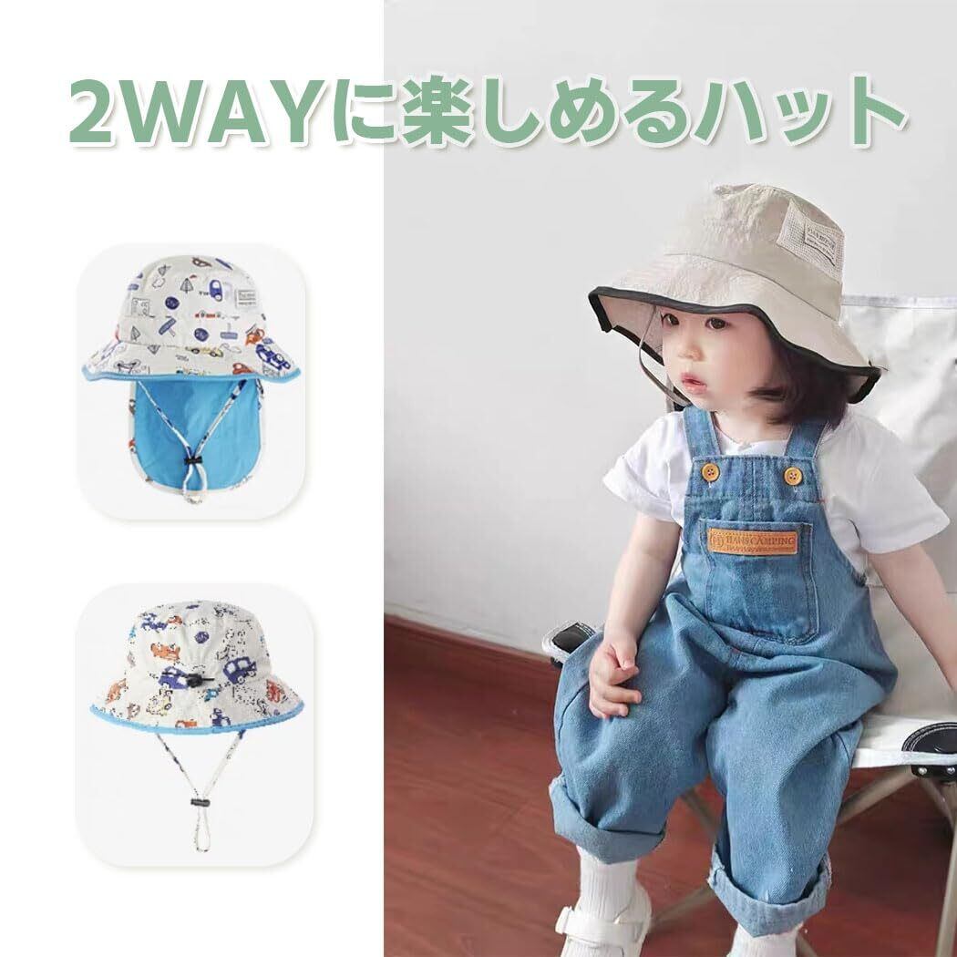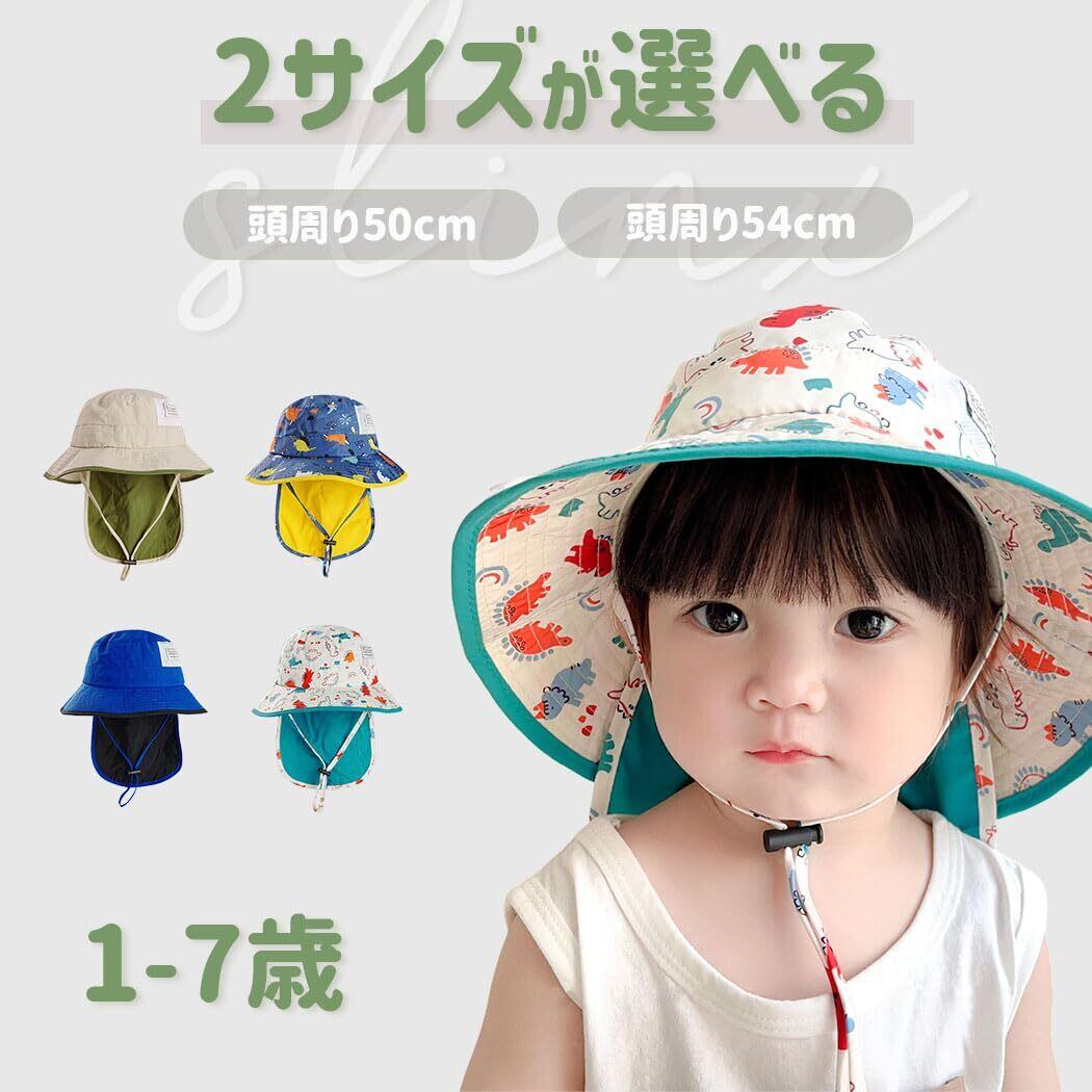 【新春セール】[SLINX] ベビー 帽子 ハット キッズ 子供 日よけ サファリハット つば広 日除け帽子 男の子 赤ちゃん UVカット 恐竜 あごひも 紫外線対策 フラップキャップ帽子 かわいい 春夏 通園/通学/海遊び/旅行 XM11 | 無意味ステッカー