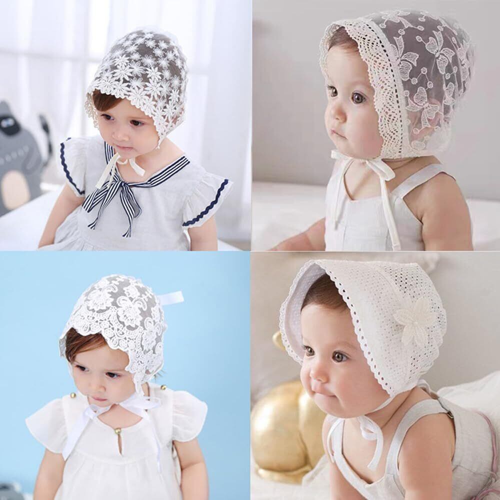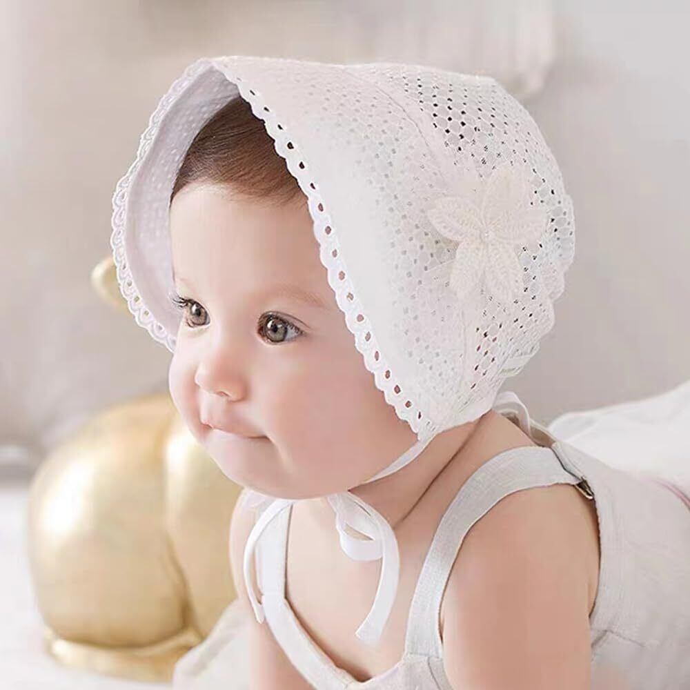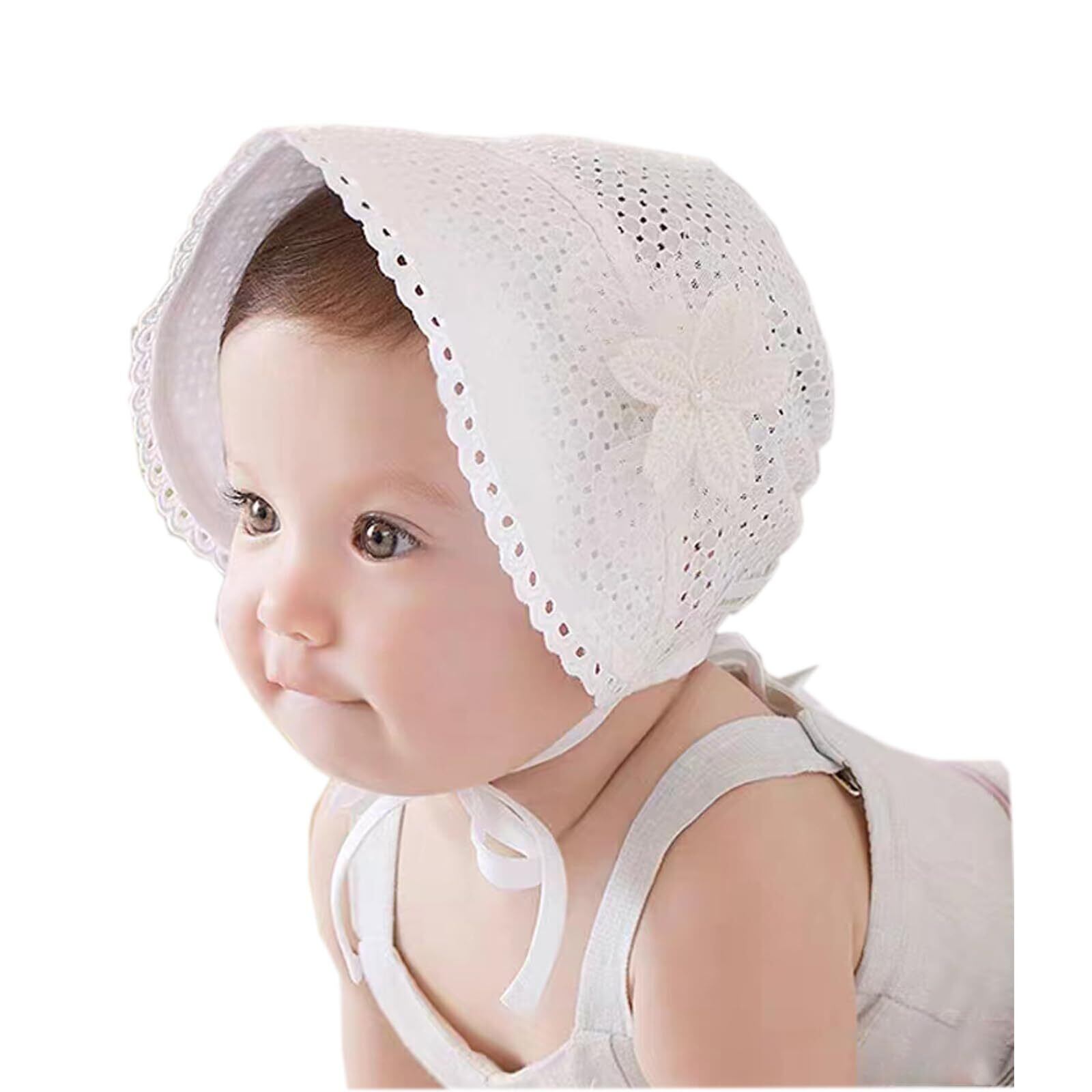 [Mum&nny] オーガニックコットン ベビー帽子 日除け ベビーハット レース ホワイト 髪飾りお宮参り 出産祝い 写真撮影 2-12ヶ月