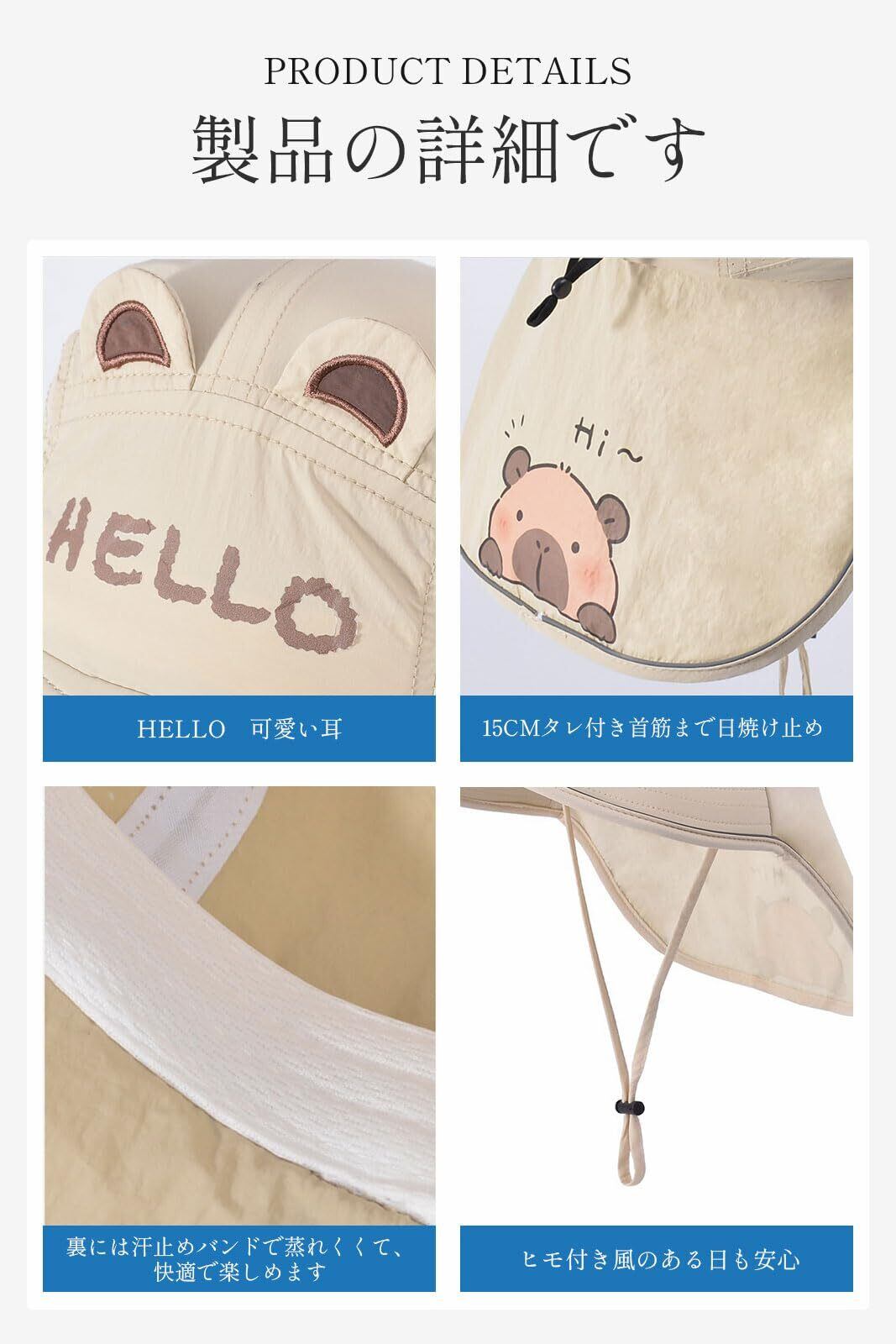 【かわいいデザイン】大人気な子供用日よけ帽子です。かわいい動物のプリントデザイン、見た目が可愛くておしゃれです。アウトドアスタイルの小物として、これからの季節にピッタリ!