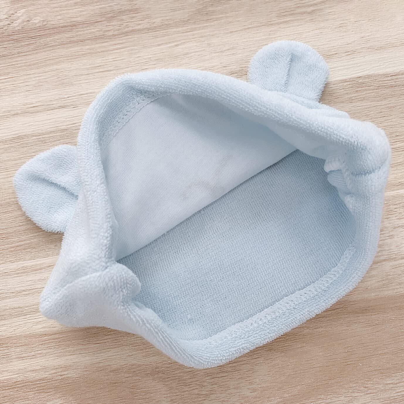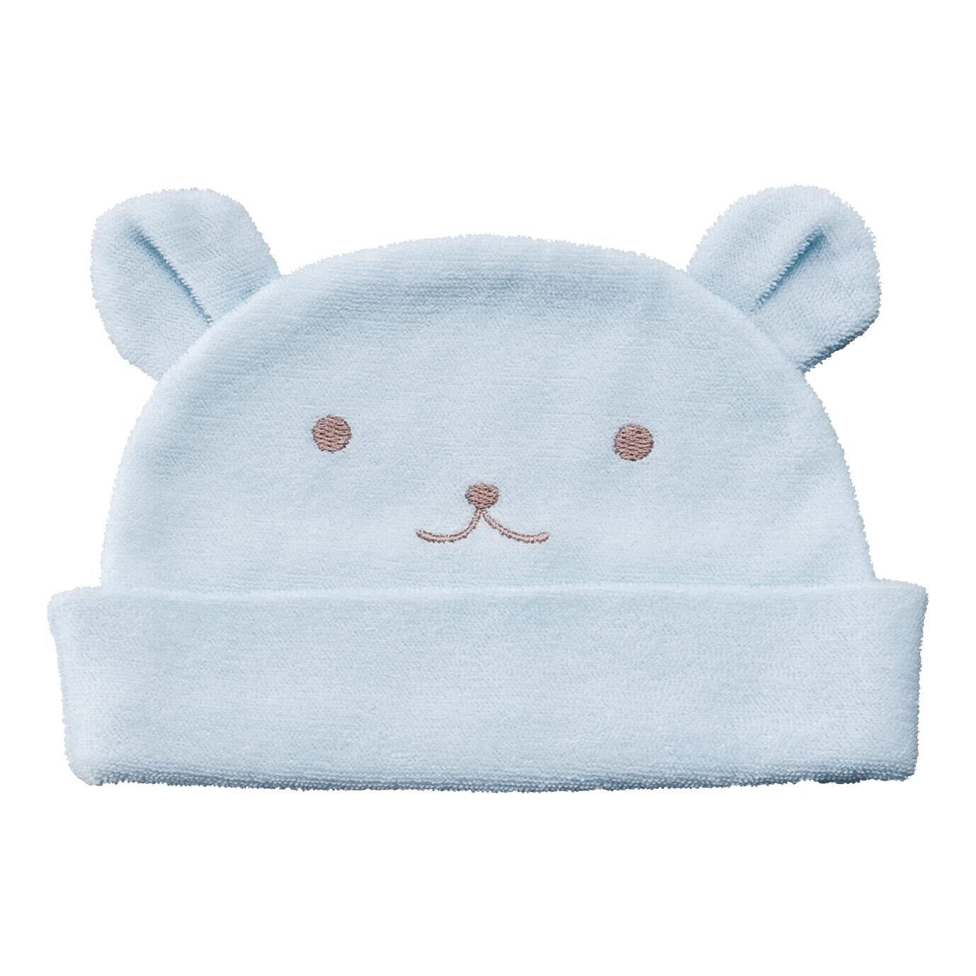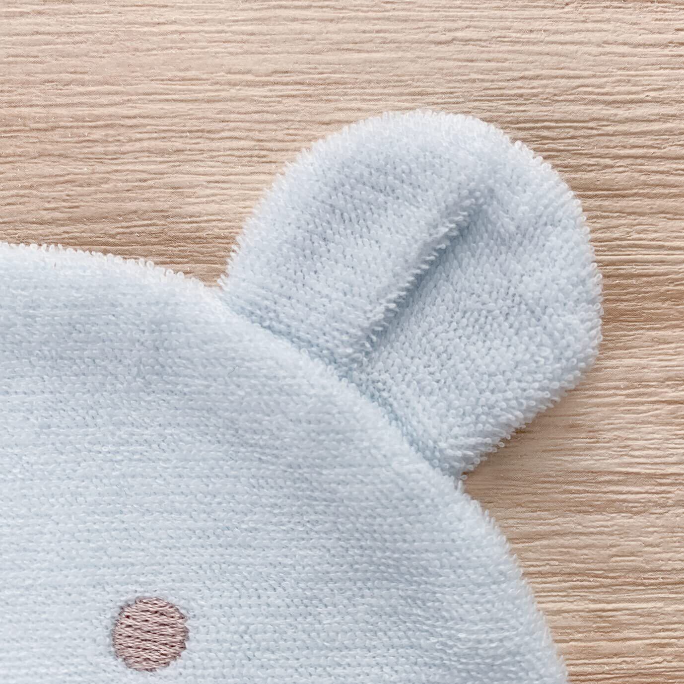 産まれたばかりの赤ちゃんの頭を優しくつつみます。やわらかな肌触りのパイルにくまの顔がかわいいデザインです。