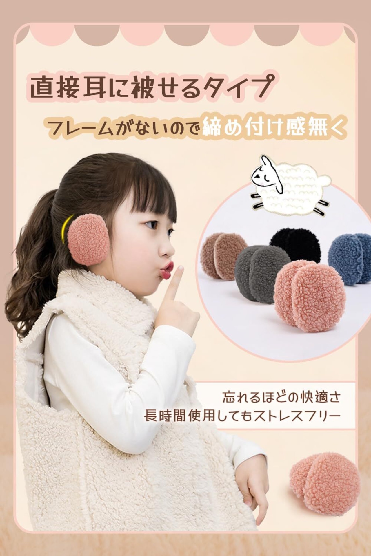 フレームなし、男の子も女の子も使用できる防寒耳カバーです。