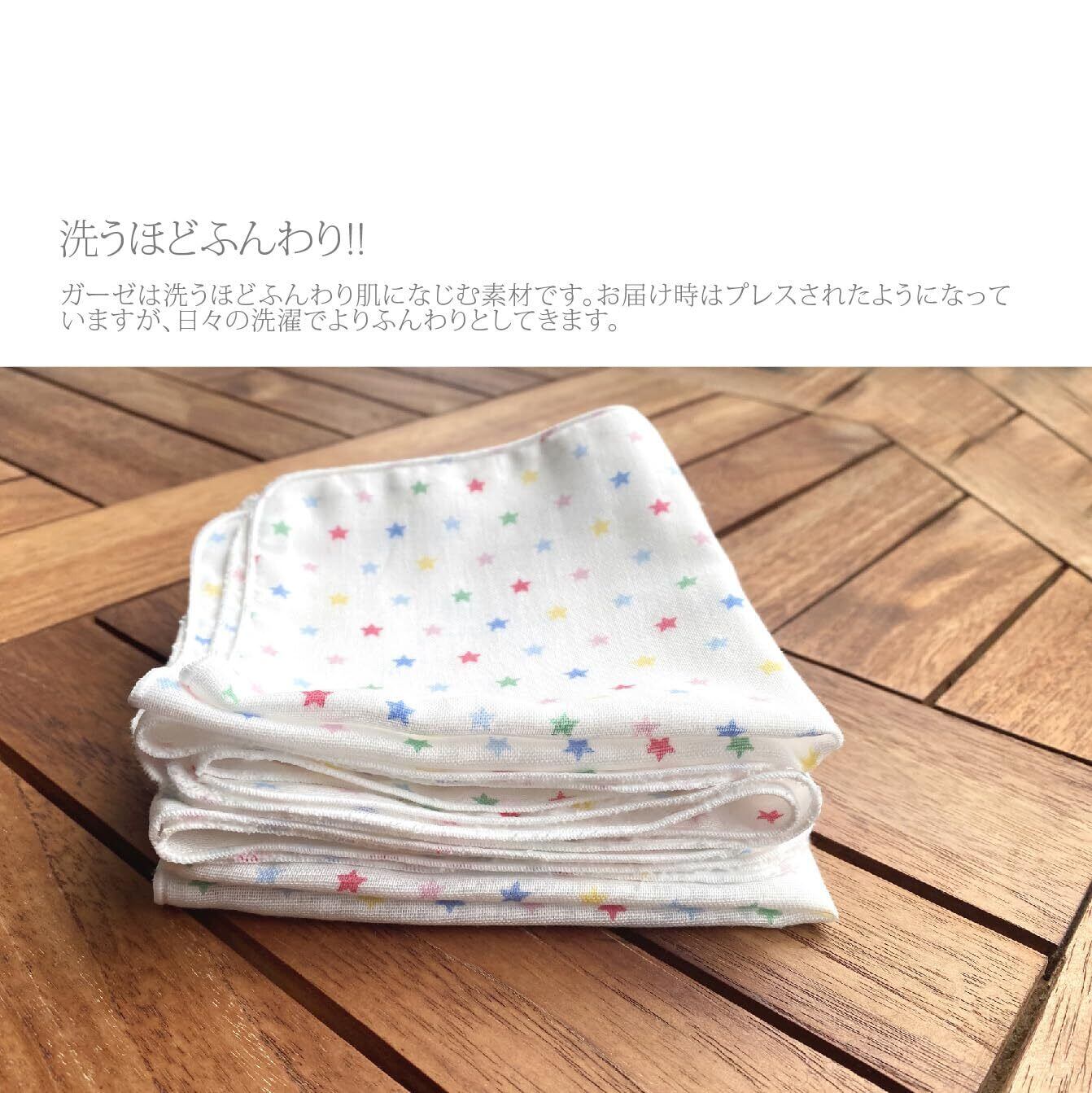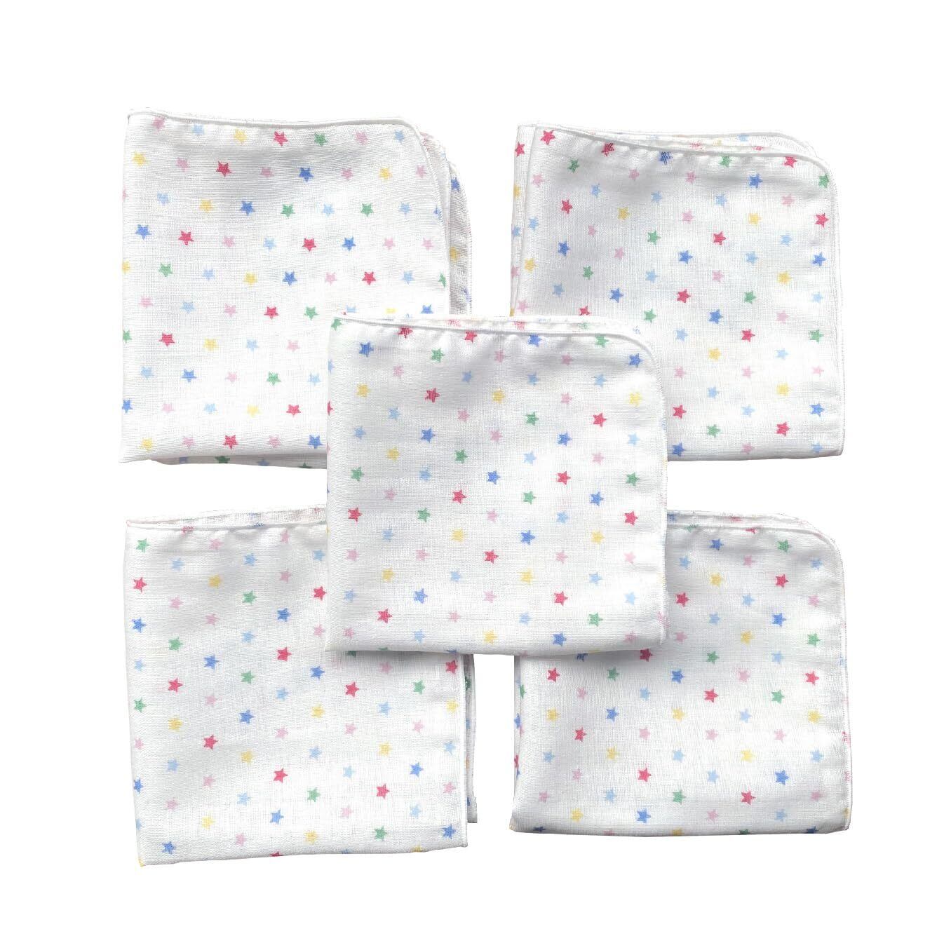 ガーゼハンカチ ホーミー柄 日本製 赤ちゃん 25×25㎝ 5枚 2層 ベビー 新生児 ガーゼ ダブルガーゼ ガーゼはんかち ガーゼタオル ベビーガーゼ (星柄(白×カラフル))