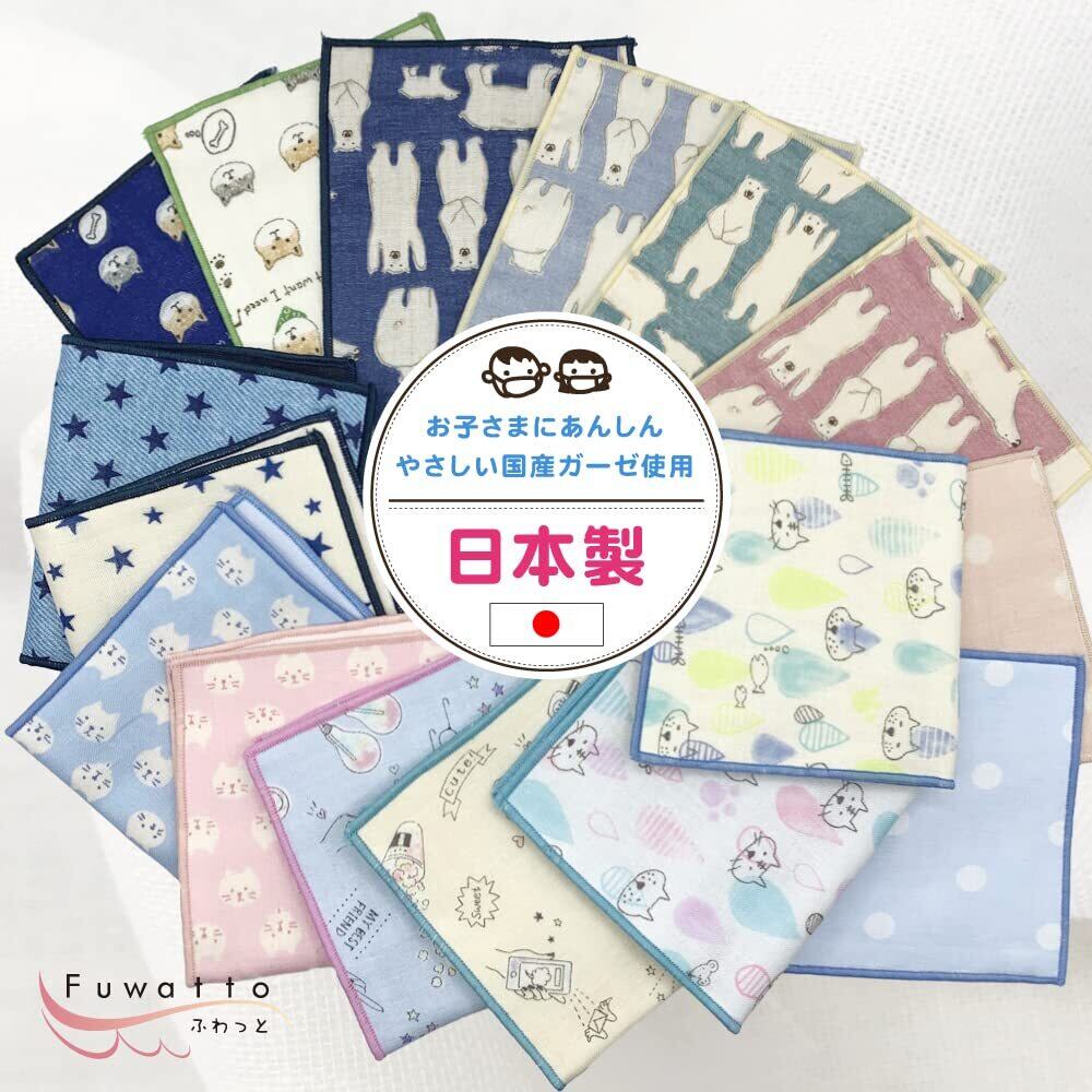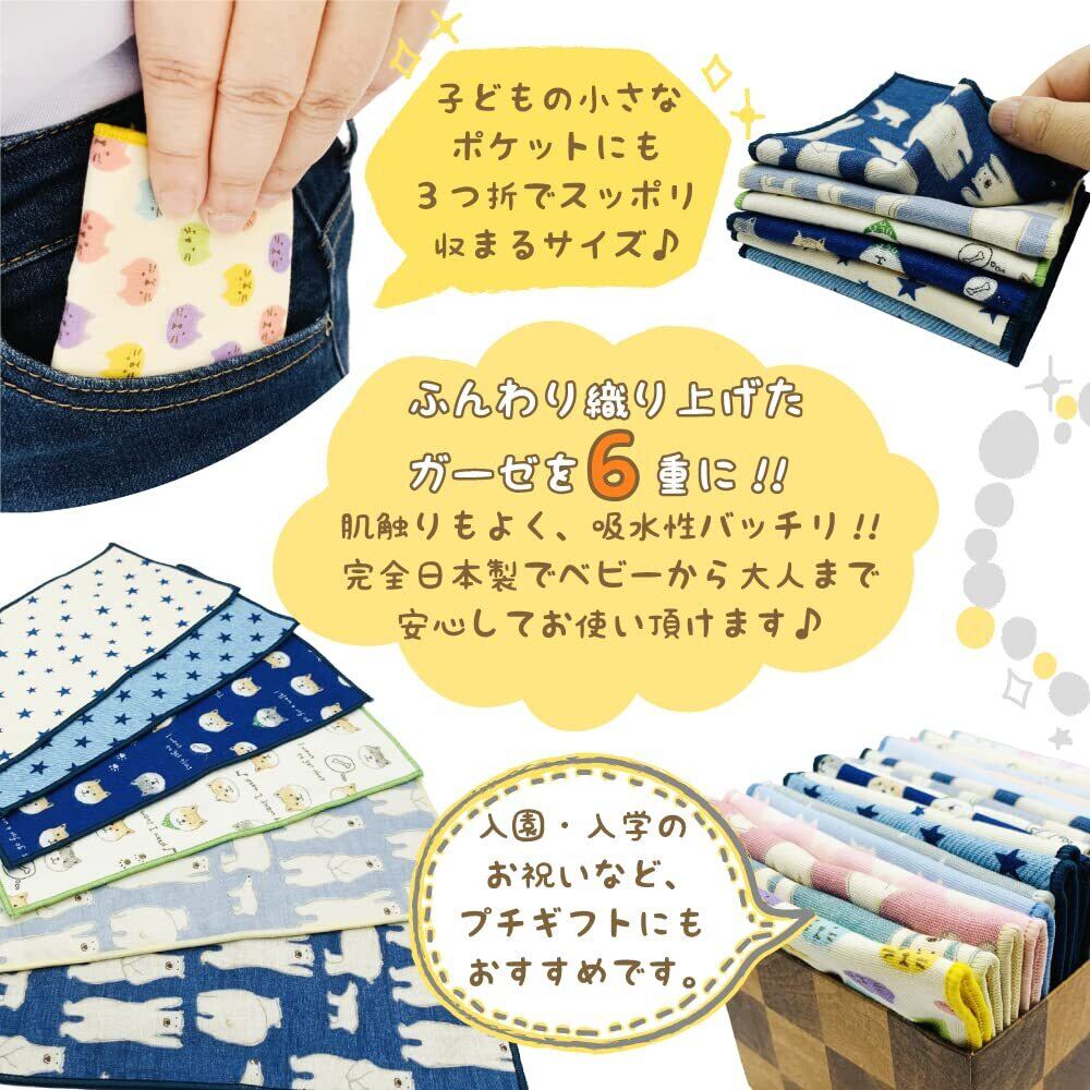 【2022最新】[cluster] キッズ ハーフハンカチ 6枚セット 日本製 綿100 ふんわり 6重ガーゼ 男の子 女の子 ガーゼ ハンカチ はんかち 子供 子ども こども かわいい柄 半分サイズ 幼稚園 保育園 入園 小学生 HEセット | 無意味ステッカー