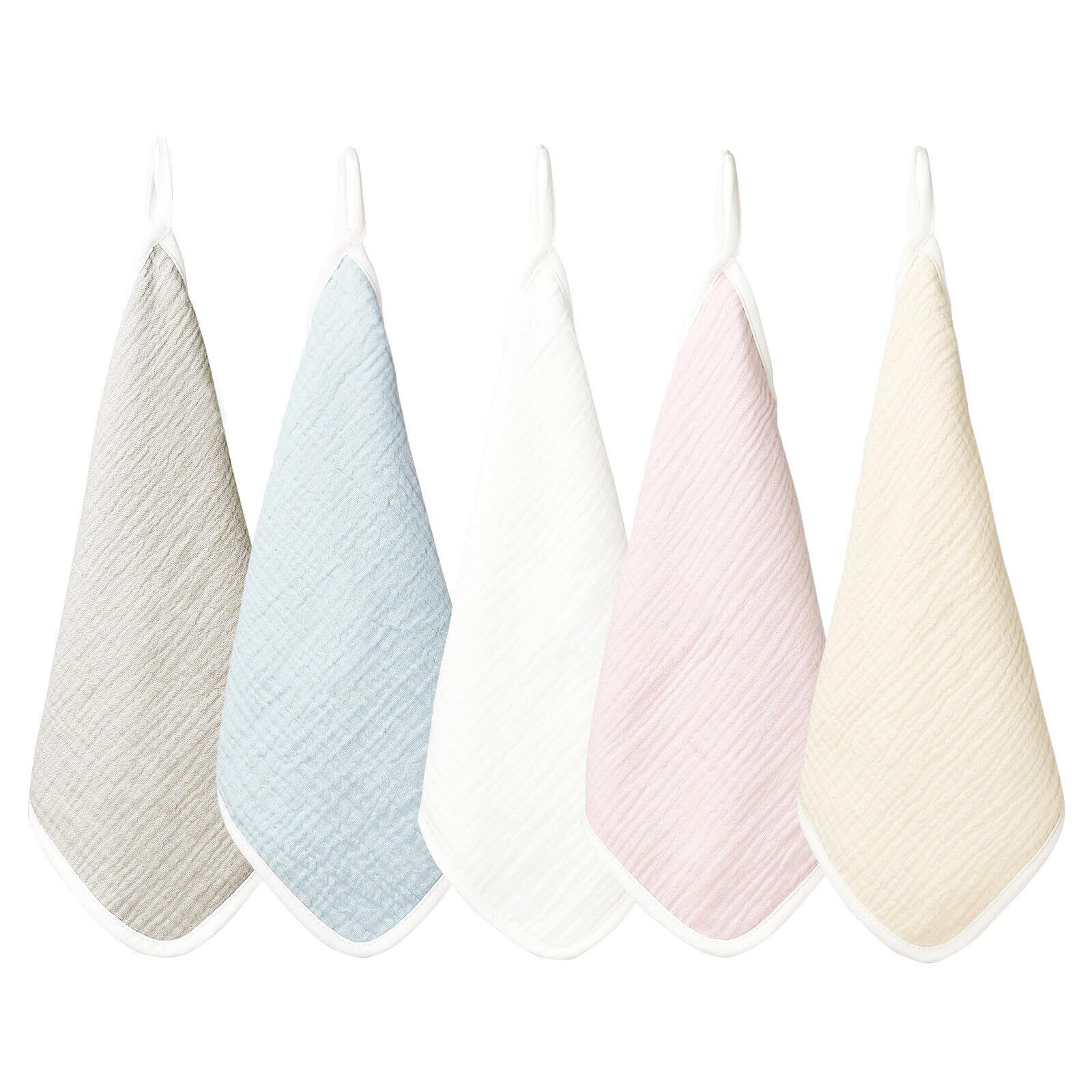 [MOMSMENU] ガーゼハンカチ 赤ちゃん ベビー タオル 綿 柔らかく 名前入 保育園 ループ付きタオル 25x25cm 5枚セット