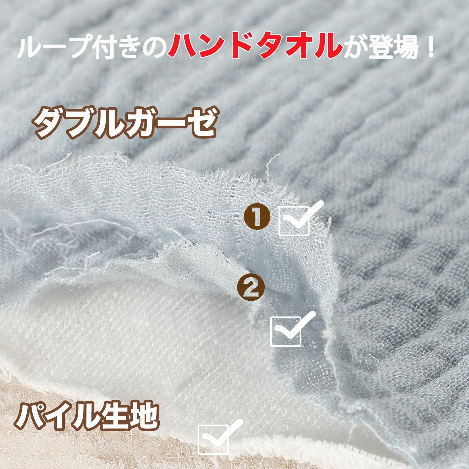 表面は柔らかなガーゼ生地で、肌に優しく、裏面は吸水性に優れたパイル生地を使用しています。