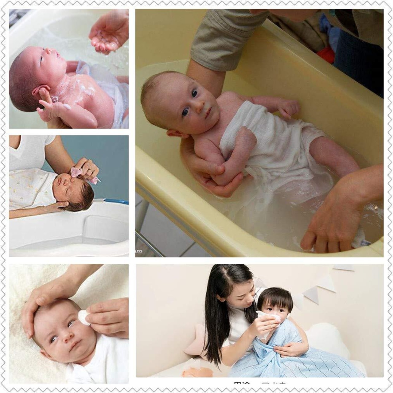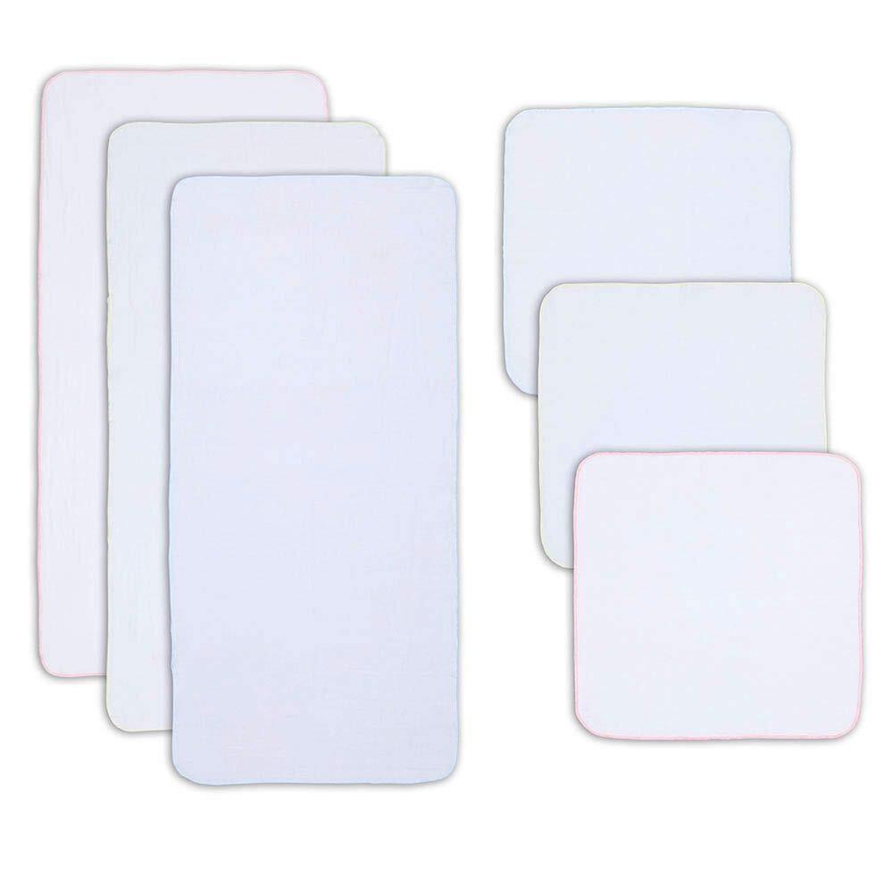 セット内容:沐浴布 35×75cm 3枚 ガーゼハンカチ 30×30cm 3枚。縁の色:ピンク、クリーム、ブルー。素材:綿100%。中国製。一枚一枚検品済み。※商品が到着30日以内返品、交換が出来ます。