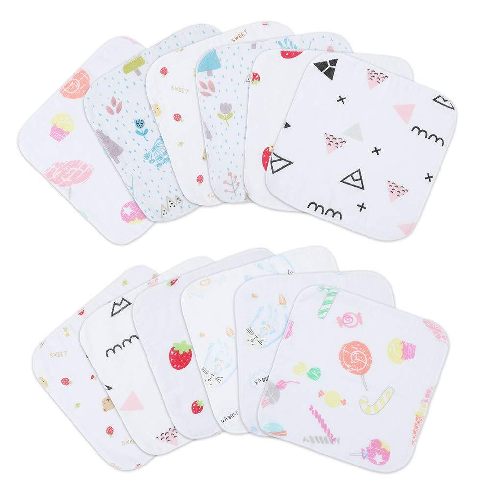 サイズ:18cm*18cm。素材:綿100% ダブルガーゼ生地(裏は白地)。ふちかがり糸:ポリエステル100%。一枚一枚検品済み。1セットに5柄各2枚。柄は弊社にお任せ。電車、恐竜、キリンなど子供の中で大人気なキャラクター柄
