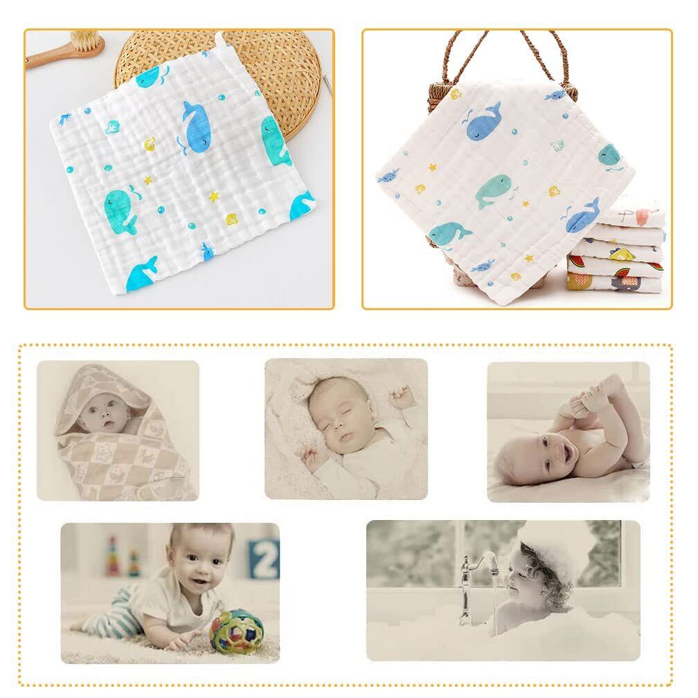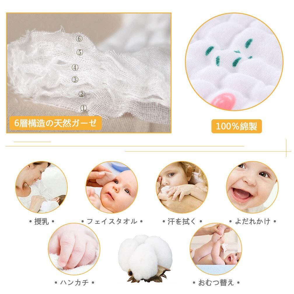VIAKY ベビータオル 8枚入り ベビービブ ガーゼタオル よだれかけ リバーシブル ガーゼハンカチ ガーゼ6重 綿100% ループ紐付き 速乾 8枚セット 25*25cm 新生児 出産祝い 女の子 男の子 ユニセックス