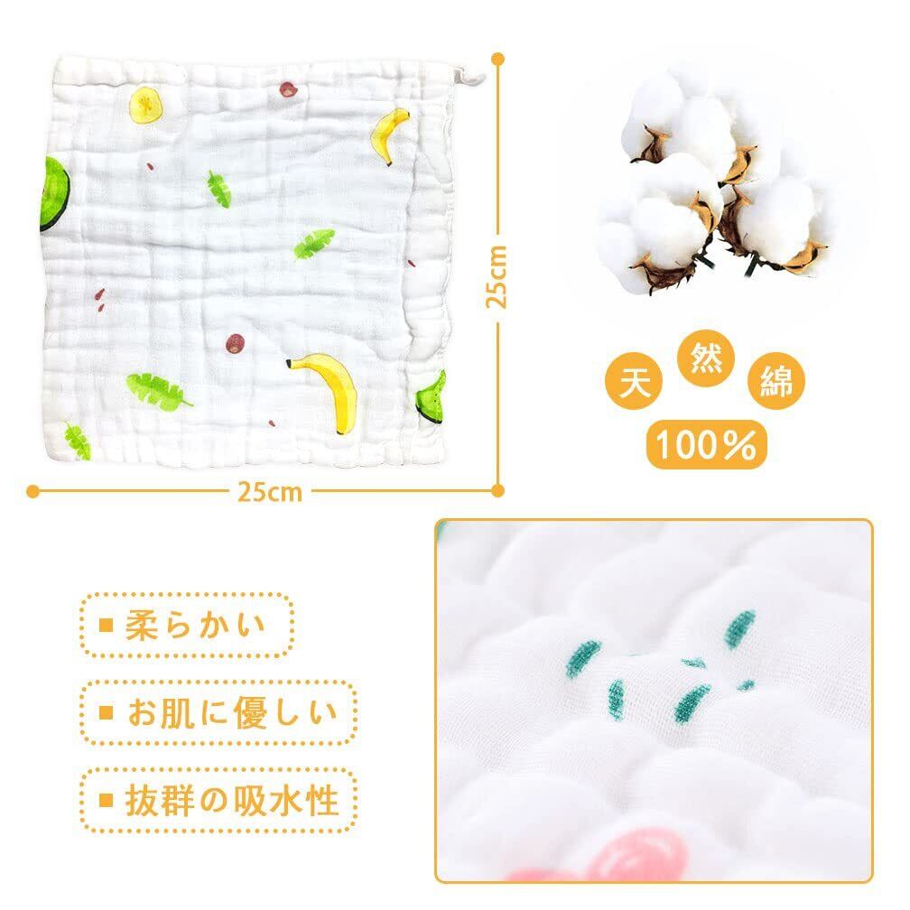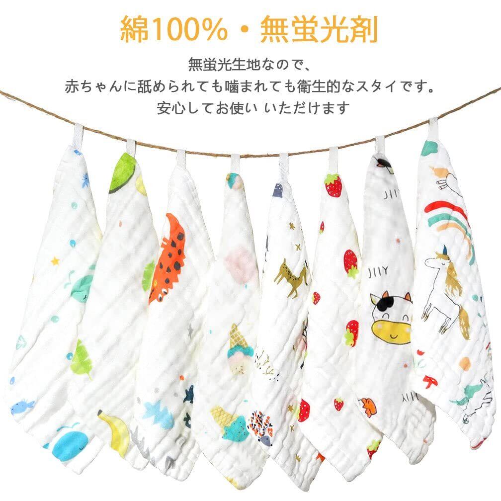 【特価セール】VIAKY ベビータオル 8枚入り ベビービブ ガーゼタオル よだれかけ リバーシブル ガーゼハンカチ ガーゼ6重 綿100% ループ紐付き 速乾 8枚セット 25*25cm 新生児 出産祝い 女の子 男の子 ユニセックス | 無意味ステッカー