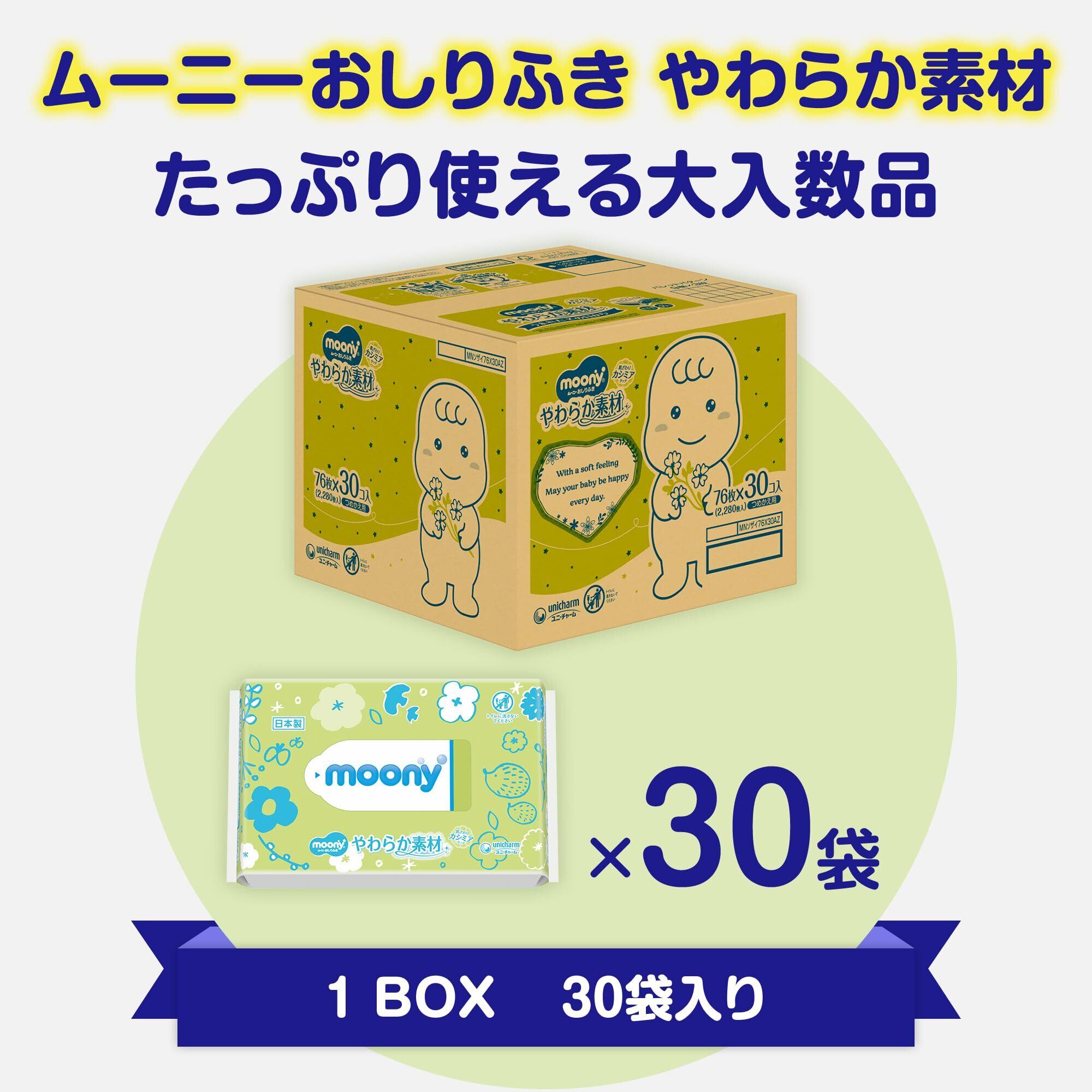 【限定】【おしりふき】 ムーニー おしりふき やわらか素材 純水99% 詰替 2280枚(76枚×30コ)無添加(アルコール・香料・パラベン不使用)日本製[ケース品]