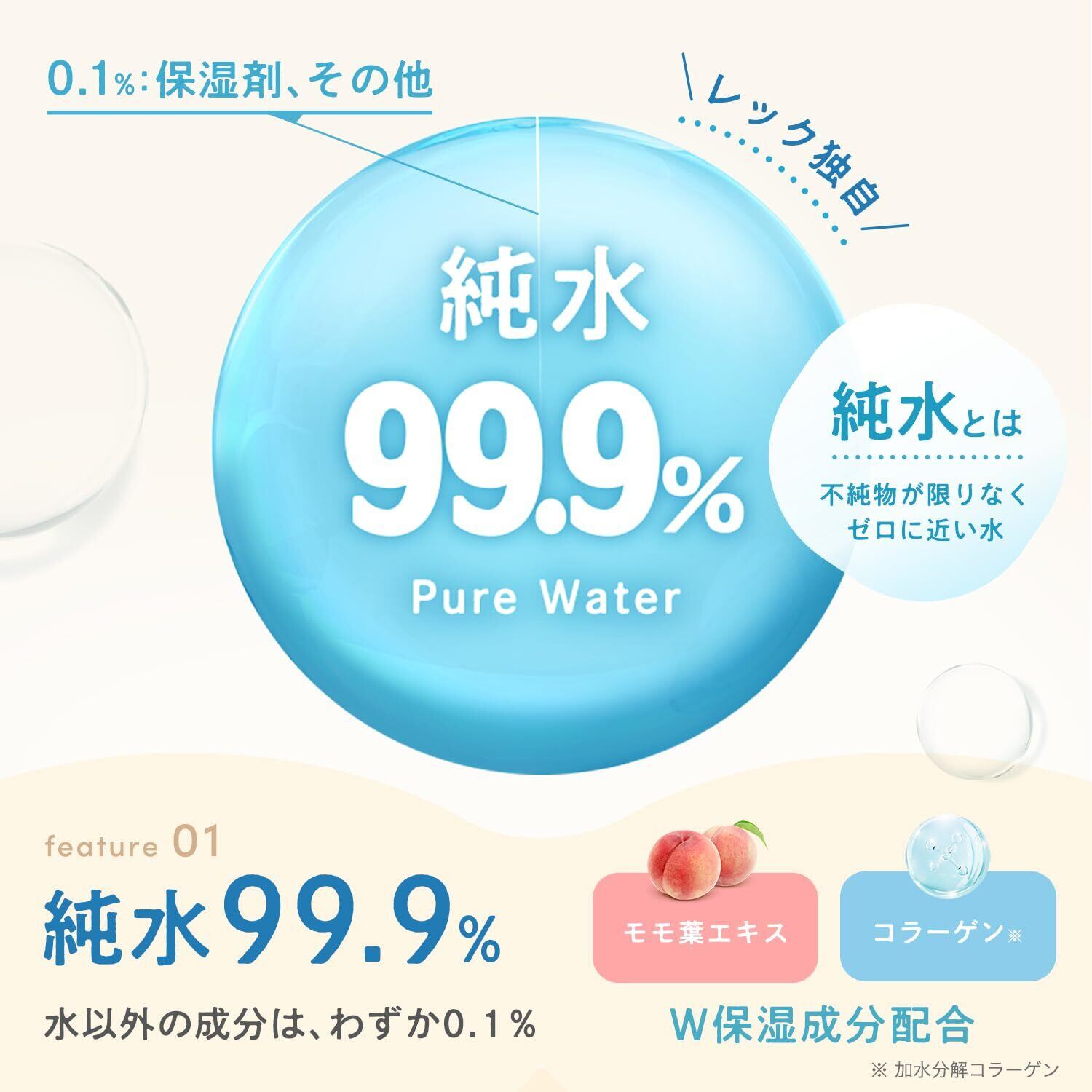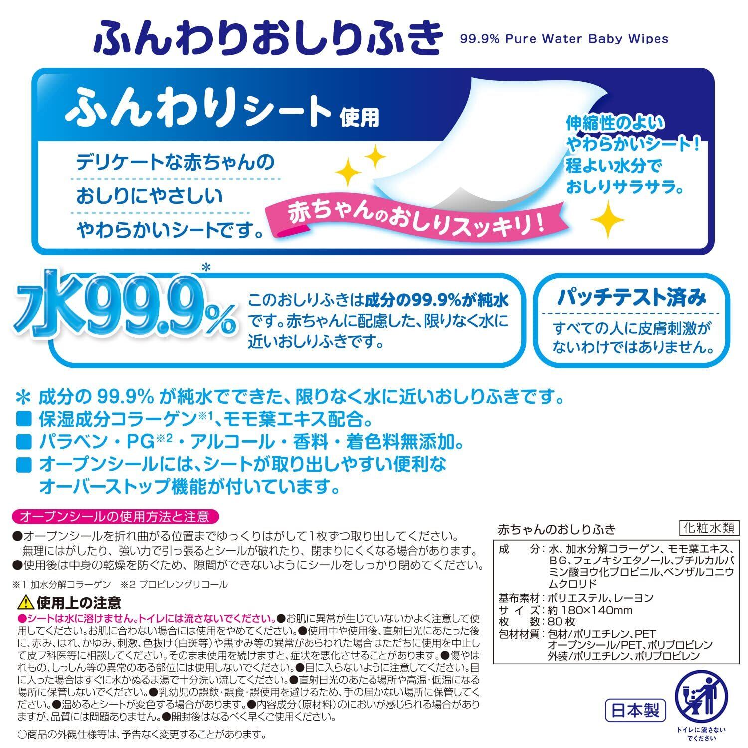 成分の99.9%が純水でできた、限りなく水に近いおしりふきです。