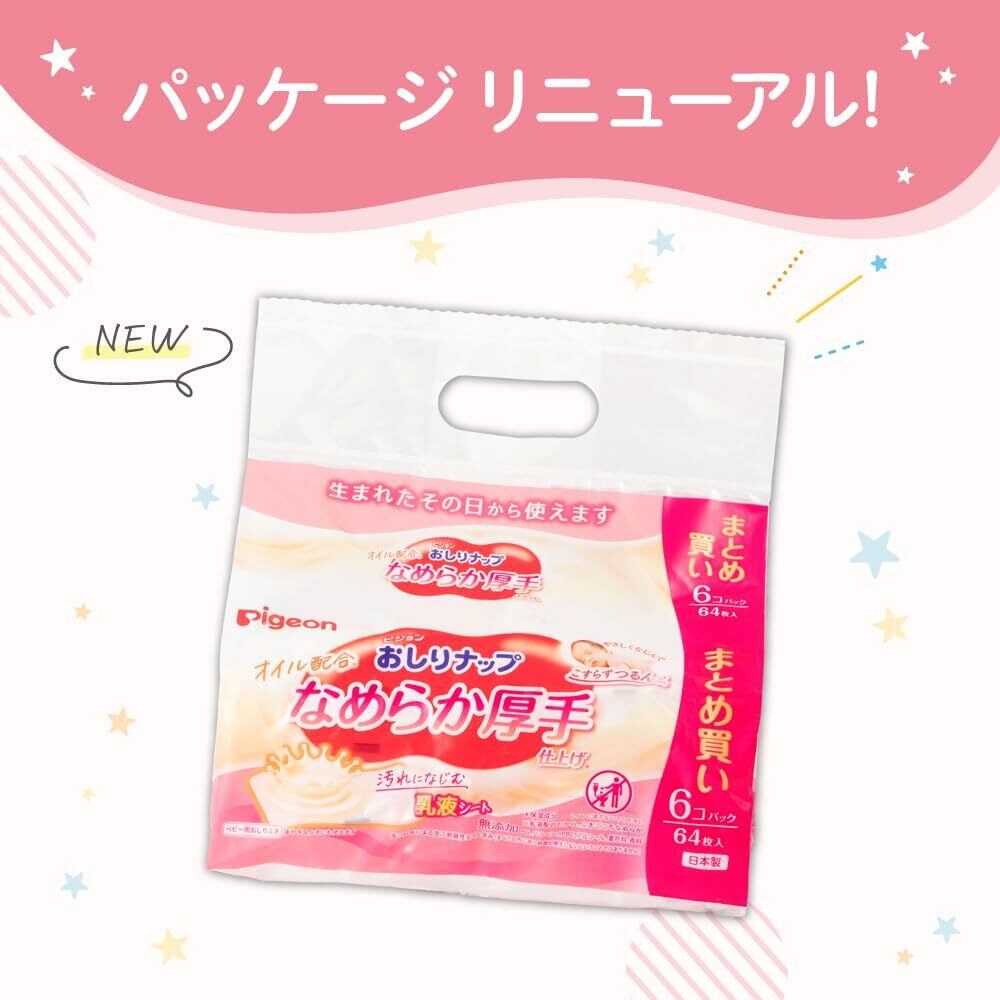 ピジョン PIGEON おしりナップ なめらか厚手仕上げ ベビーオイル配合 768枚(64枚×12パック)
