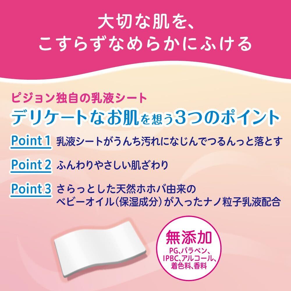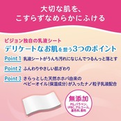 ・大切な肌を、こすらずなめらかにふけるピジョン独自の乳液シート デリケートなお肌を想う3つのポイント
