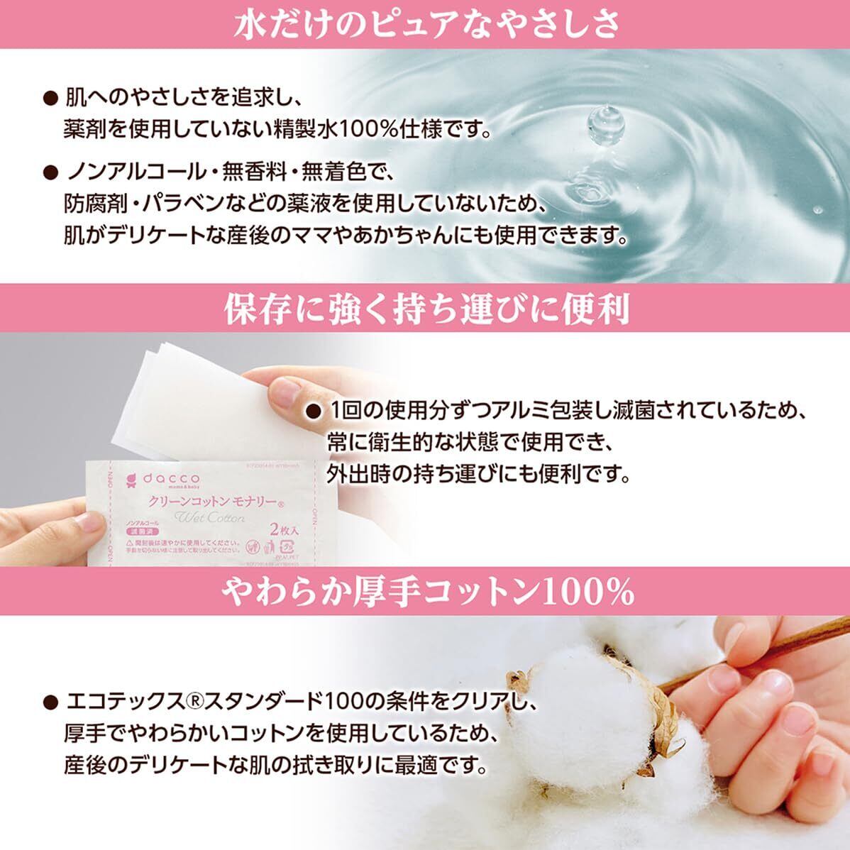 精製水100%の滅菌済やわらかウェットコットン