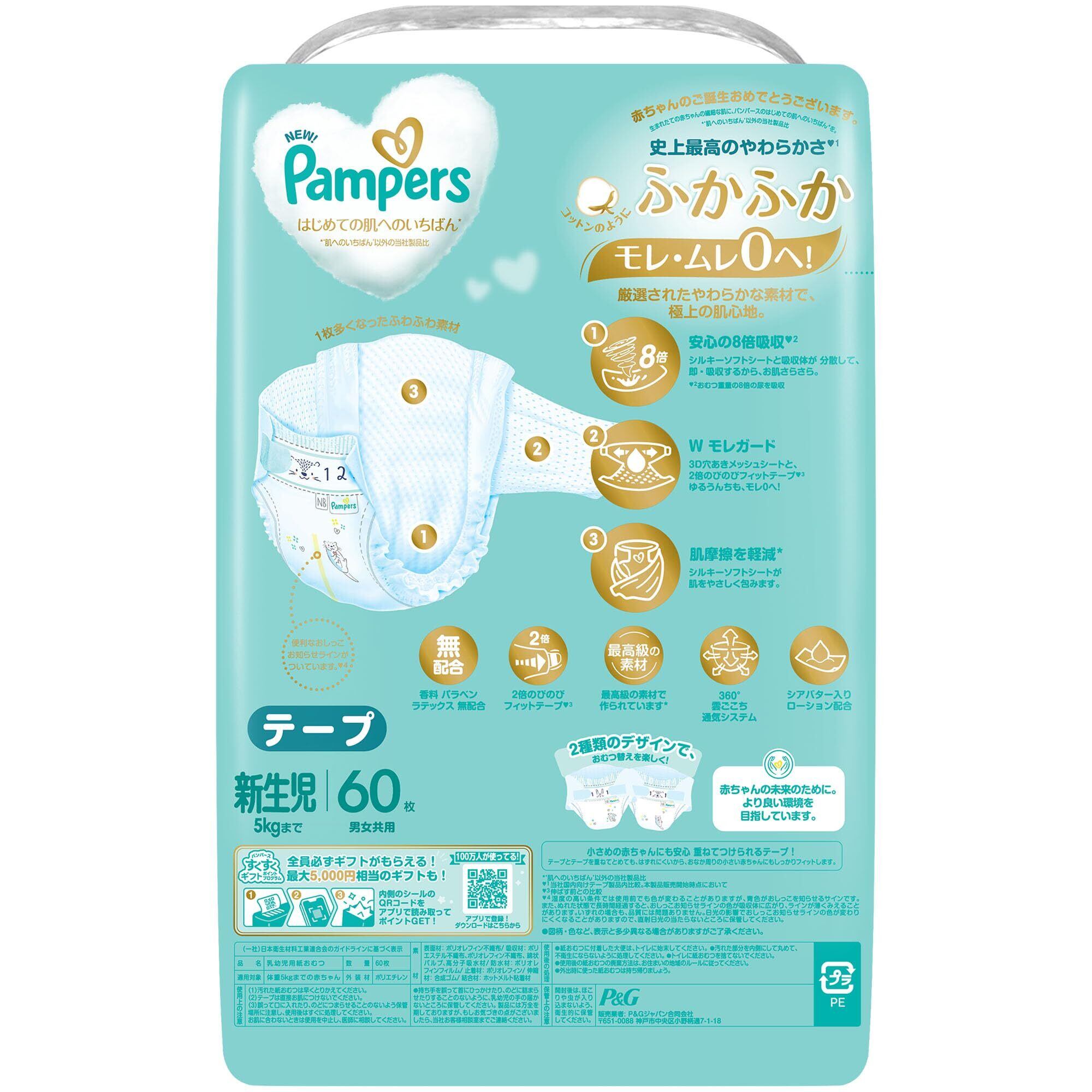 パンパース 【テープ 新生児サイズ】 オムツ はじめての肌へのいちばん (5kgまで) 60枚