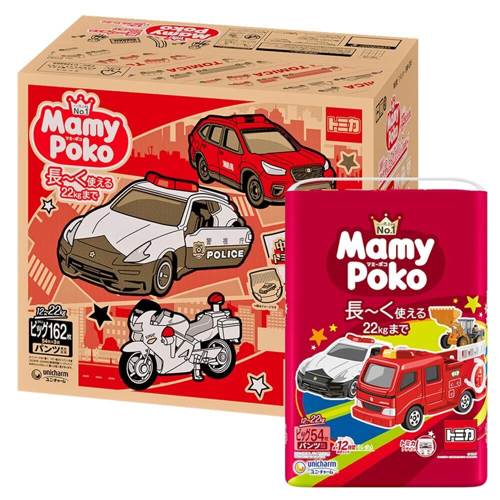 【パンツ ビッグサイズ】 マミーポコ パンツ オムツ(12~22kg)162枚(54枚×3)トミカ・プラレールデザイン企画[ケース品]