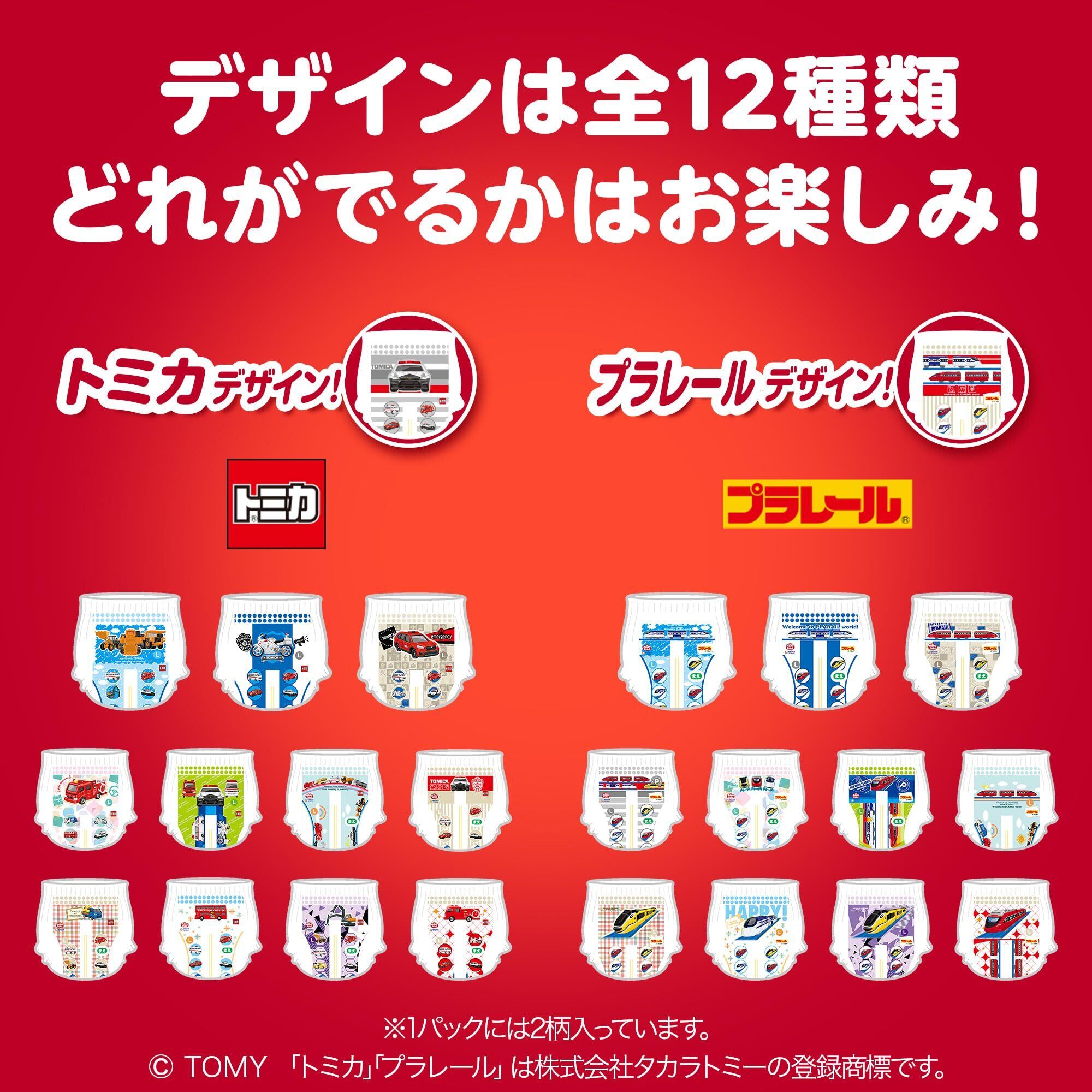 「最大12時間※吸収ジェル」採用のユニ・チャーム独自の吸収体が、繰り返しのおしっこをたっぷり引き込んで素早く吸収!ウエストは超ふわふわ!足回りは超なめらか!のびのびフィットで履かせやすいリニューアルしたトミカ・プラレールデザイン!うしろもまえもカラフル柄。※赤ちゃんのおしっこ量には個人差があります。※1当社従来品比