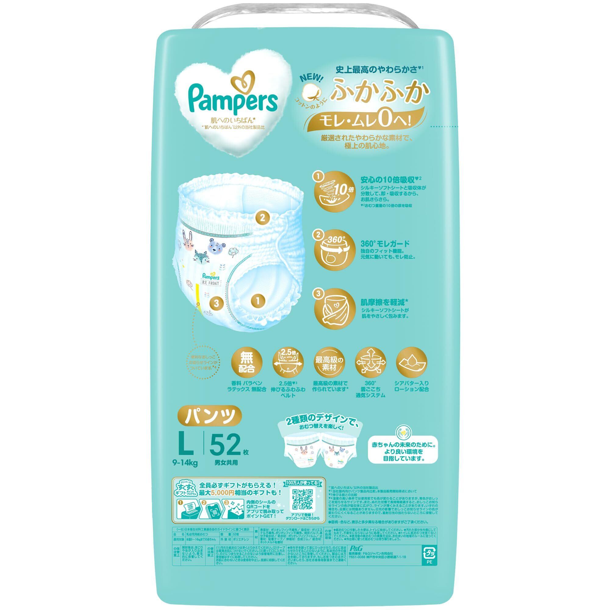 【パンツ Lサイズ】パンパース オムツ 肌へのいちばん (9-14kg) 208枚(52枚×4パック) [ケース品] 【限定】