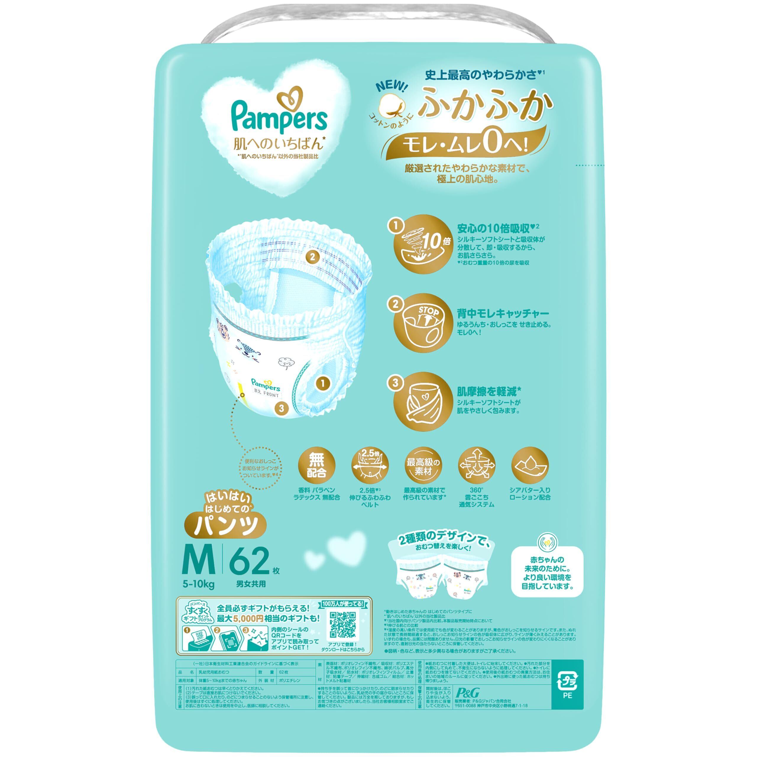 パンパース 【パンツ Mはいはいサイズ】 オムツ 肌へのいちばん (5~10kg) 186枚(62枚×3パック) [ケース品] 【限定】