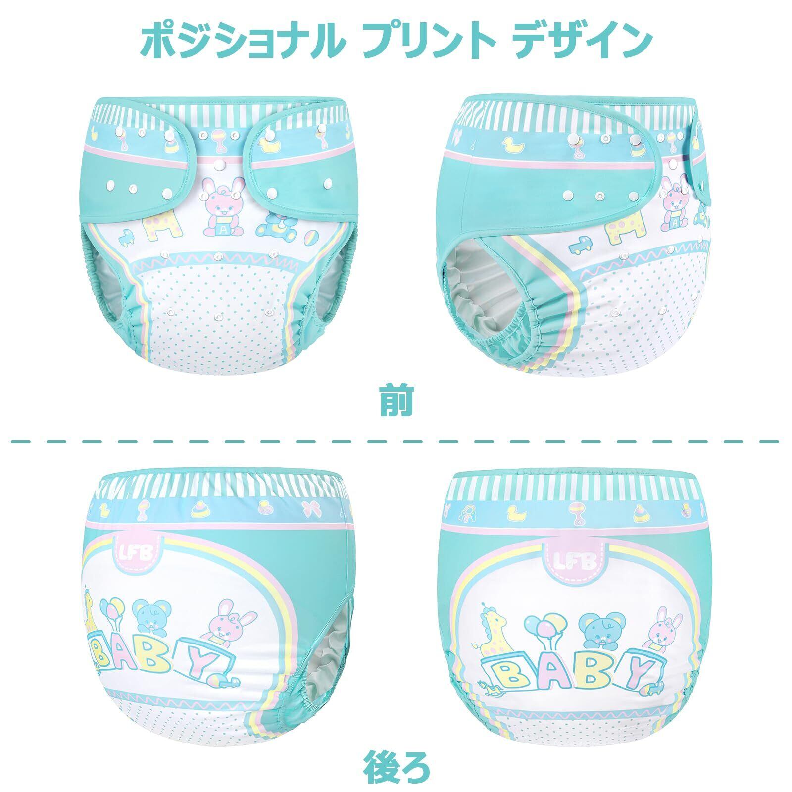 LittleForBig大人用布おむつカバー 可愛い絵柄【パレードをしているベビー】調節可能なウエストと長さ スナップ付 漏れ防止 通気性 洗濯可 S