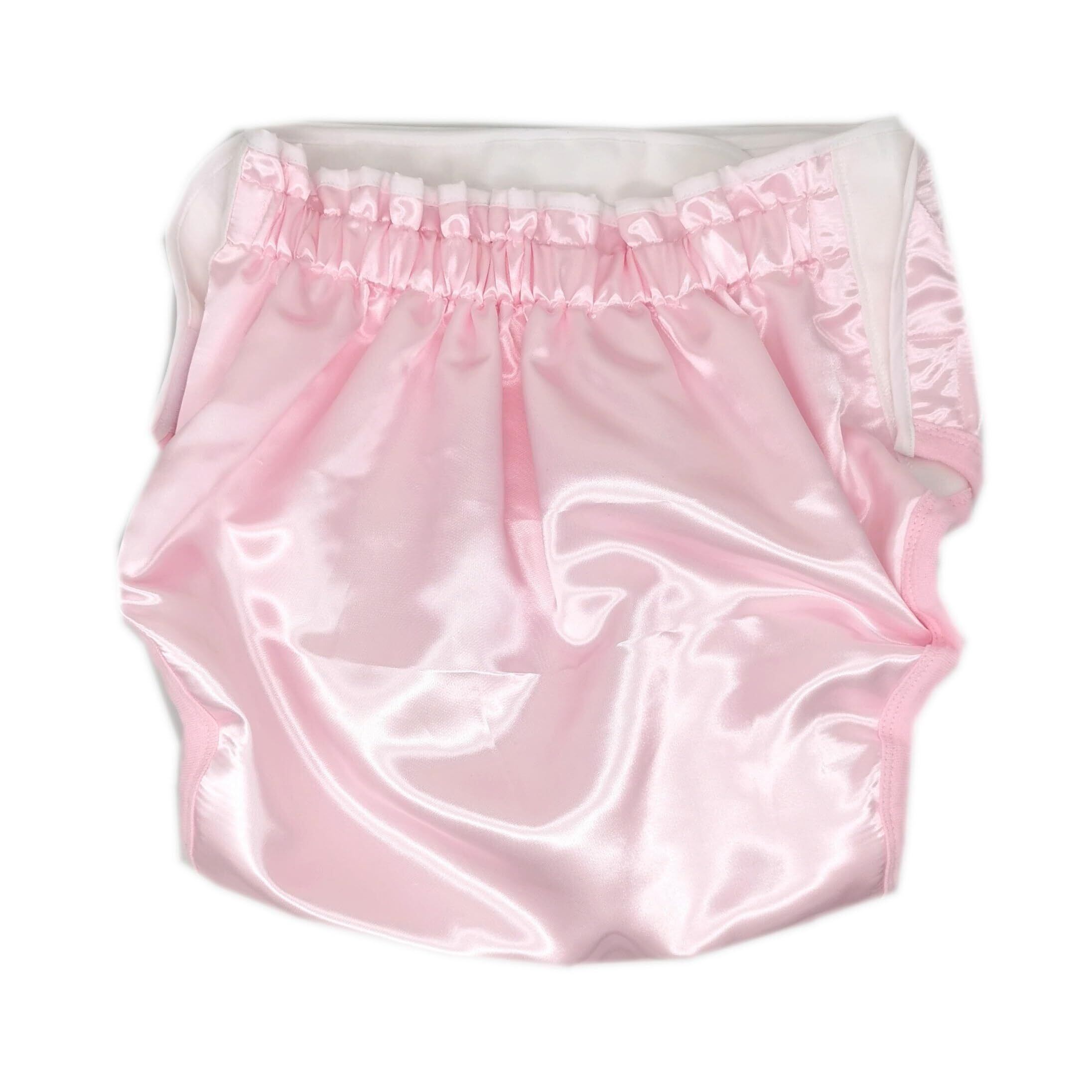 [ママミッケ] おむつカバー 股おむつ 大人用 かわいい マジックテープ サイズ調整 快適 防水加工 (ピンク色、サテン, LL)