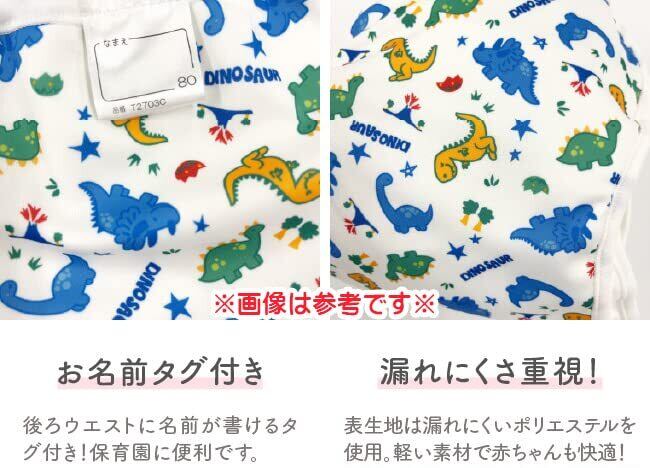 後ろ腰に名前が書けるタグ付で保育園用にも重宝します。(サイズ)80cm、90cm(素材)ポリエステル100%、中国製