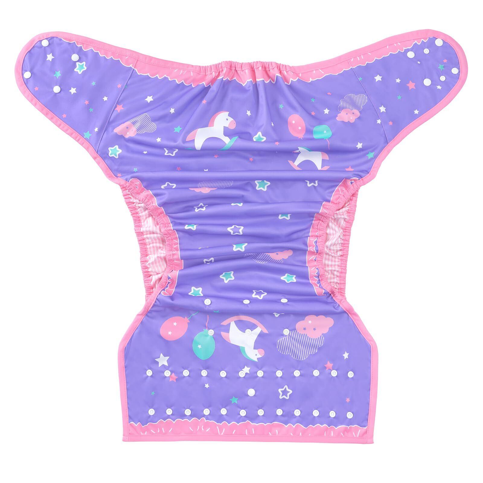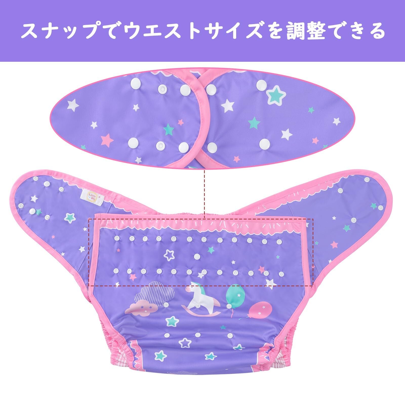 [LittleForBig] 大人用おむつカバー 可愛い絵柄【リトルファンタジー】 調節可能なウエストと長さ スナップ付 漏れ防止 通気性 洗濯可