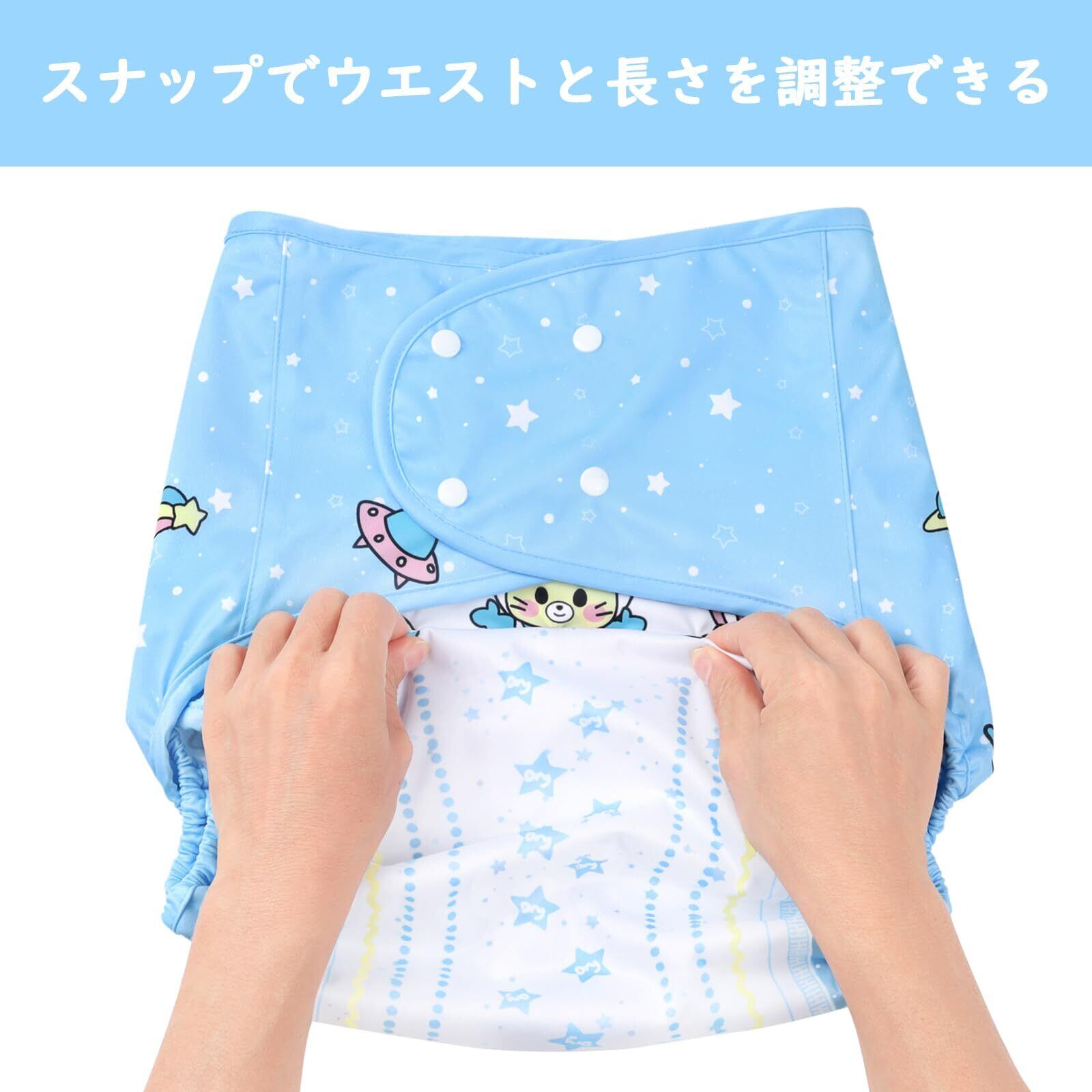 LittleForBig 大人用おむつカバー 可愛い絵柄【ベビー宇宙員】調節可能なウエストと長さ スナップ付 漏れ防止 通気性 洗濯可