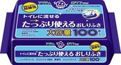 たっぷり使える大容量100枚入り。使用後はトイレに流せます。素肌と同じ弱酸性