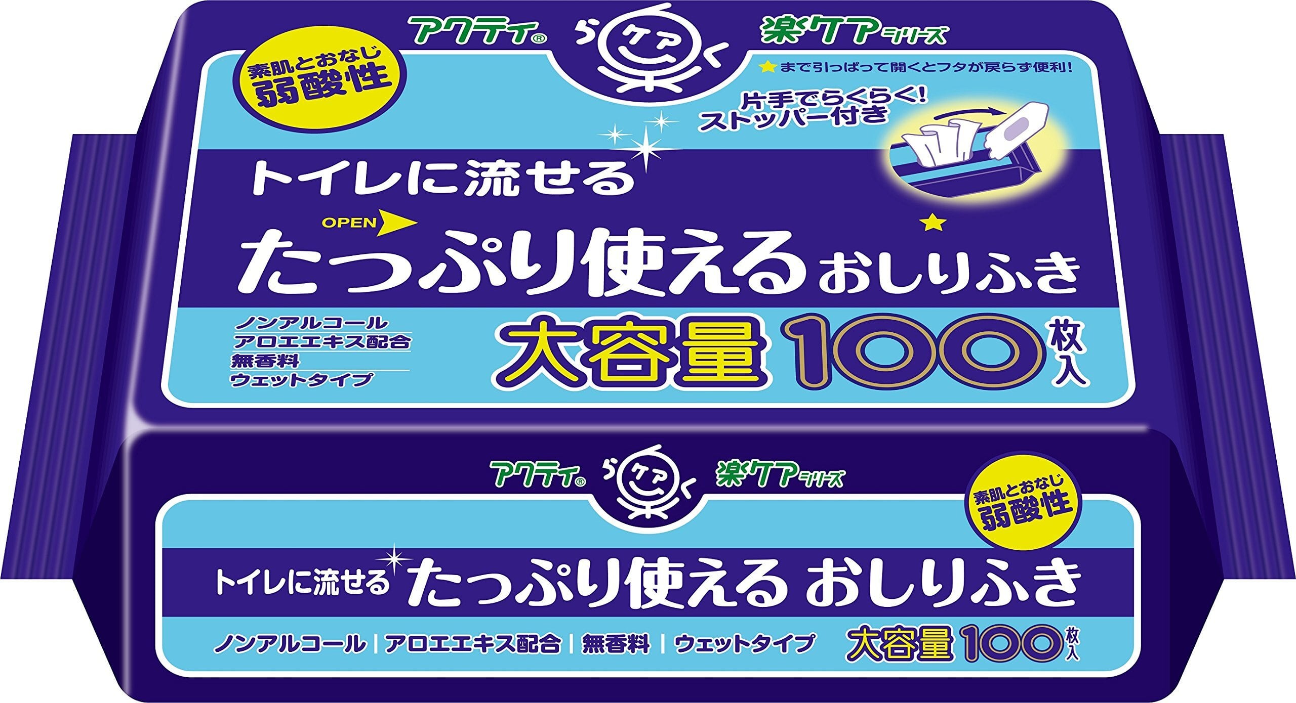 アクティ 【まとめ買い】 トイレに流せる たっぷり使えるおしりふき 100枚×4