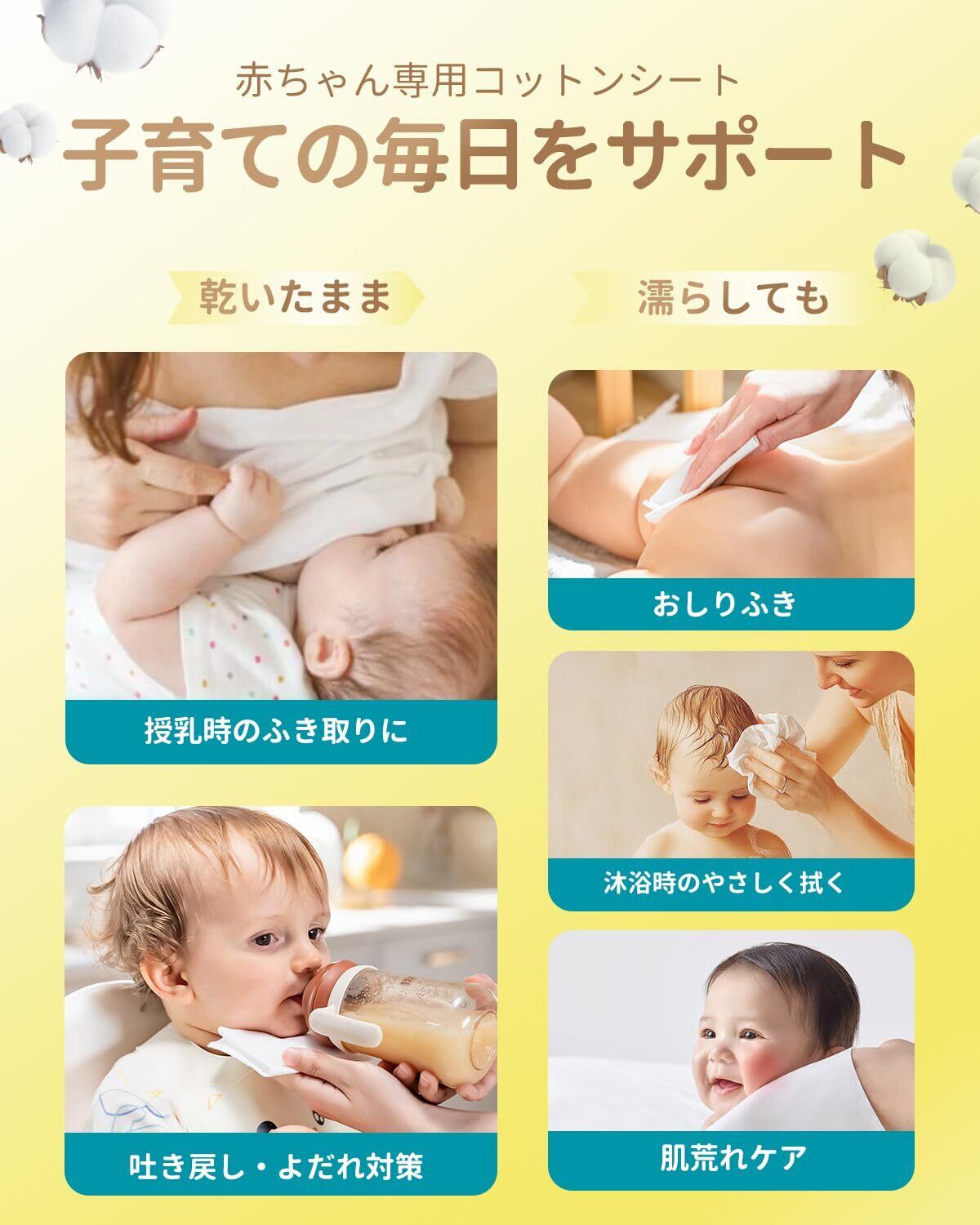 【大判サイズ&幅広く活用】Winner ベビーコットンは、15cmx20cmの大判サイズで、一枚サイズと厚さが十分し、数回拭き取れます。赤ちゃんのおしりふき、手口ふきのほか、クレンジングタオル、フェイスタオル、ウェットティッシュ、メイク落としシート、化粧コットン、お掃除などの様々なシーンにも活用できる。